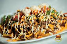 Tortilla de harina, frijol molido, queso tierno, 50 g de carne o pollo, salsa queso + 200 gr de papas y ensalada.