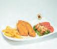 Filet de tilapia empanizado, 200 g de papas y ensalada.