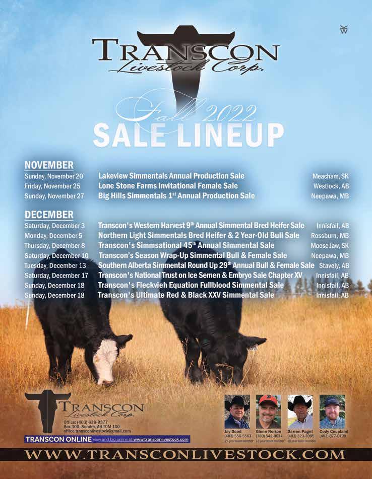 Transcon’s Western Harvest 9th Annual Simmental Bred Heifer Sale, Innisfail, AB December 4