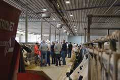 After enjoying a delicious lunch on the bus, our third stop was Divorne Farms, a modern fully automated robotic dairy located southwest of Haywood, MB. The summer of 1979 saw the building of the dairy barn at the current location, milking approximately 120 cows. In 2000, an addition was completed on the dairy barn to be able to milk approximately 180 cows. In the win ter of 2014, a major decision was made to build a total ly robotic dairy facility with the focus on cow comfort and labor efficiency with 5 Lely robots. The first T30 triolet automatic feeding system was installed which enables Pierre to feed the entire dairy herd within 30 minutes. A Val Metal Daf automated straw bedding dispenser, a first for the company, beds the cows daily without disrupting any cow flow. The barn has been retrofitted with Bioret water mattresses to enhance cow comfort. The alleys are covered with Legend Rubber floor throughout the 60,000 plus square foot facility. The facility encompasses 150 stall suites for newborn calves, where they are raised for 3 months before being transferred to the heifer barn. Since a 6th Lely robot has been installed, the dry cows have been relocated to the older barn with the breeding heifers. Additionally, 2 more Lely robots have been installed to milk the fresh heifers and cows, therefore, less disruption occurs for the remainder of the herd.