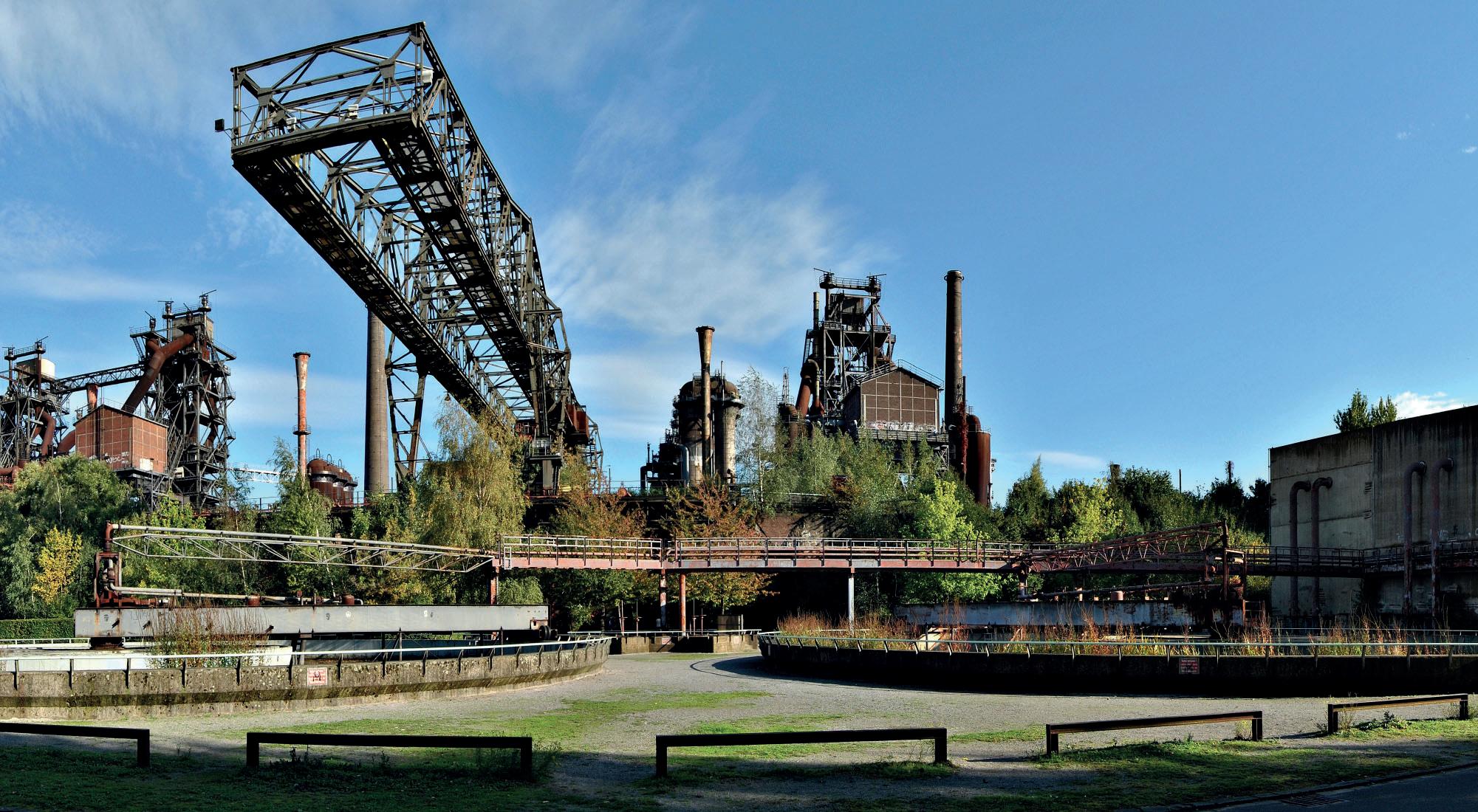 Before its transformation into a public park the Thyssen Ironworks operated a fully integrated steel production facility that played a crucial role in Germany’s heavy industry. The site housed multiple blast furnaces, coke ovens, casting halls, and rail transport systems, all designed to support large-scale iron and steel manufacturing.