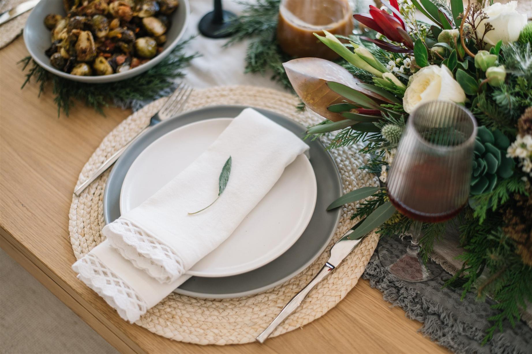 Let your guests know how loved they are with the perfect place setting A place setting also indicates the tone/feeling & experience you want your guests to have Everything will taste even more amazing with a beautiful setting. We are excited to introduce Fable Dinnerware Dinnerware Collection for the upcoming holiday season. DINNERWARE Place Setting 1) Serving Platter - Speckled White or Dove Gray ($68) 2) Breakfast Bowls - Speckled White or Dove Gray ($70) | 3) Pasta Bowls - Speckled White or Dove Gray ($80) 4) Salad Plates - Speckled White or Dove Gray ($70) | 5) Dinner Plates - Speckled White or Dove Gray - ($80) 6) Isla Lace Napkins - Set of 4 ($88) | 7) Maja Maize Placemat ($12) (1) (2) (3) (4) (5) (6) (7) 31
