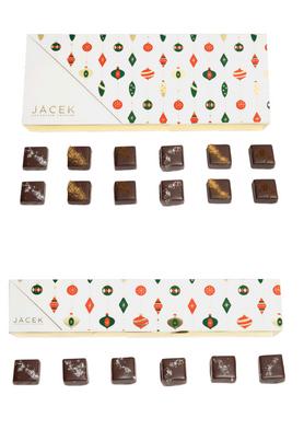 Are you a chocolate lover? Our locally handcrafted Jacek Chocolate Holiday Collection is sure to impress! CHOCOLATE by Jacek 1) Holiday Caramel Collection - 12 pieces ($28) | 2) Sipping Chocolate ($16) 3) Holiday Collection ($28) | 4) Holiday Caramel Collection ($16) 5) Luxe Chocolate Quartet ($26.00) | 6) Holiday Collection ($16) 7) Gingerbread Bar ($6) | 8) Claus Bar ($6) | 9) Ralph Bar ($6) (1) (2) (3) (4) (5) (6) (7) (8) (9) 37