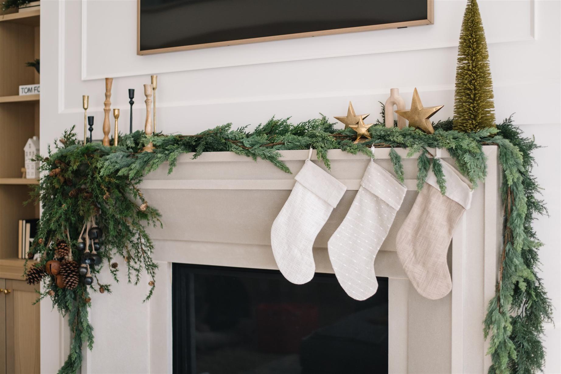 stockings are much more than just a place to put little treasures for our loved ones to enjoy! They have become on of the most recognized heirlooms of holiday mantle decor. These neutral, natural and organic toned stockings are sure to compliment all other decoration themes 54