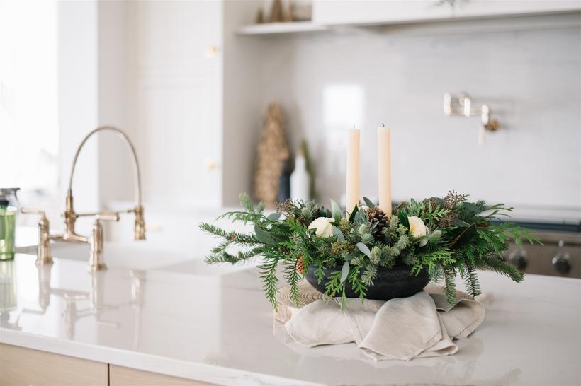 Candles, seasonal stems, throw pillows and blankets are what we'd consider the “essential four” items to transition our home into each new season