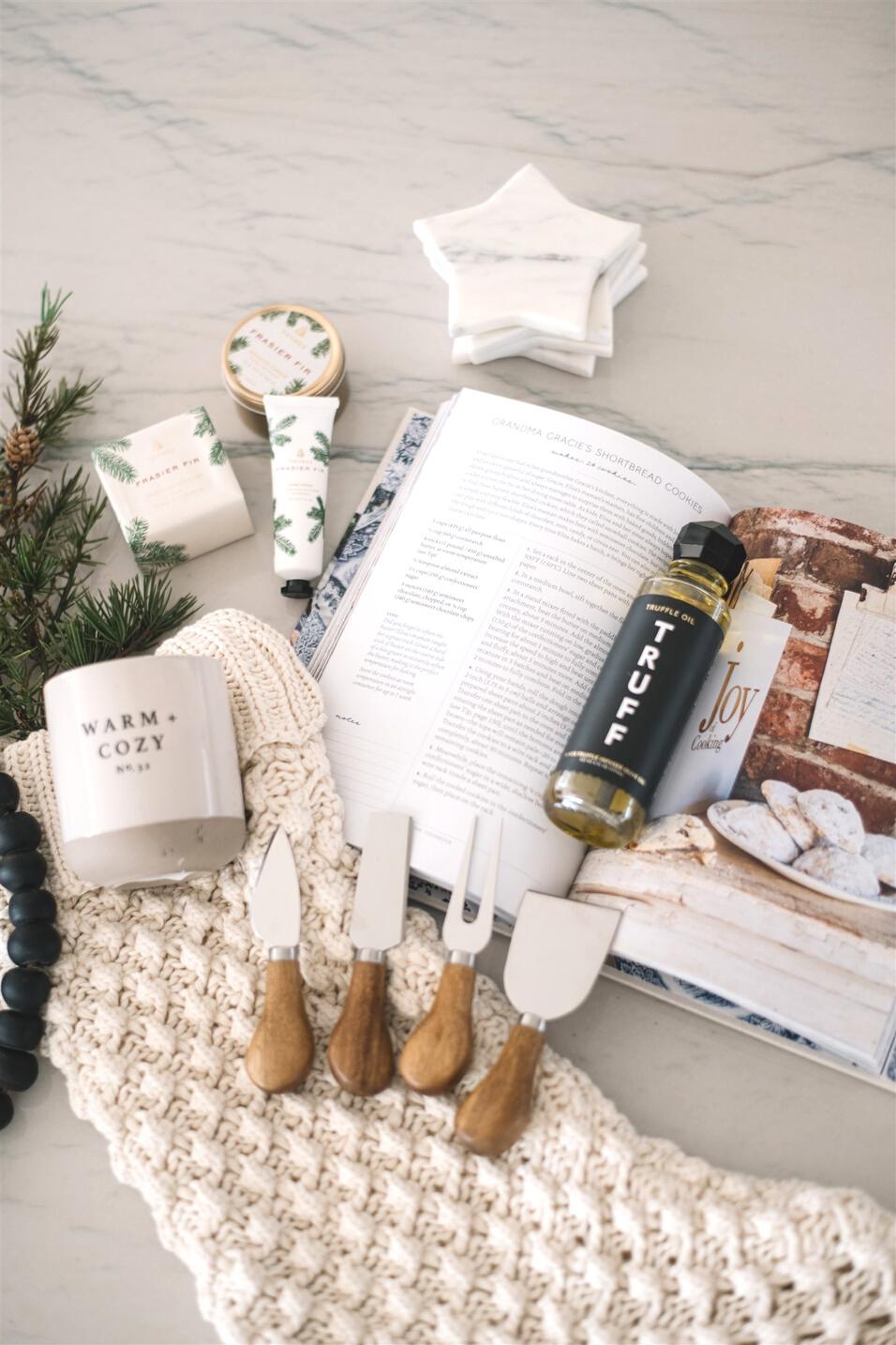 (8) (4) (6) under $40 1) Vetiver Sage Hand Lotion ($28) | 2) Olive Gift Set ($28) | 3) Blossom Bubble Bath ($38) 4) Self Care Elixir Wellness Tea ($22) | 5) Sunday Morning Gold Candle ($28) | 6) Hazelnut Coffee Syrup ($22) 7) Rattan Cheese Knife Set ($38) | 8) Cabin Fever Coffee Mug ($24) | 9) White Marble Heart ($24) 10) Better Together Whole Bean ($28) | 11) Summer Sea Salt ($24) 12) Frasier Fir Pine Needle Candle - Gold Lid ($36) (1) (2) (3) (5) (7) (9) (10) (11) (12) GIFTS 57