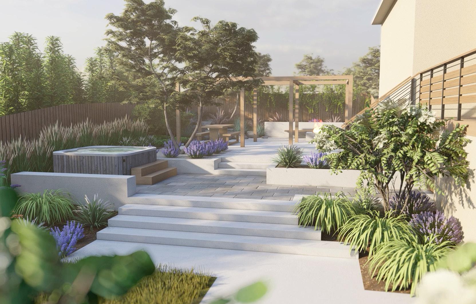 Every concept plan is unique. For most landscape designers, the concept plan is an approximate drawing of all the proposed elements. At this stage, it’s important to locate key features such as shade trees and shrub areas. The exact quantity and size is less important. Grab some paper and start sketching with a pencil. Work through a few options and then get a thicker pen out to trace fnal shapes. Jot down notes for each unique piece to help communicate your vision.