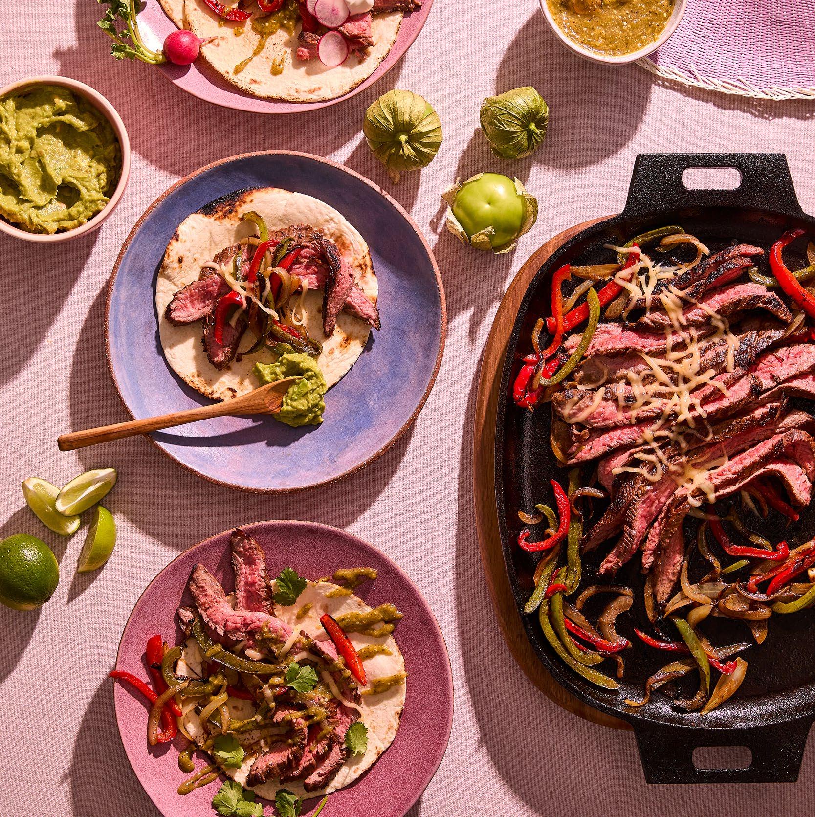8. Serve the fajita filling and salsa verde with the tortillas and optional toppings, if you’d like.