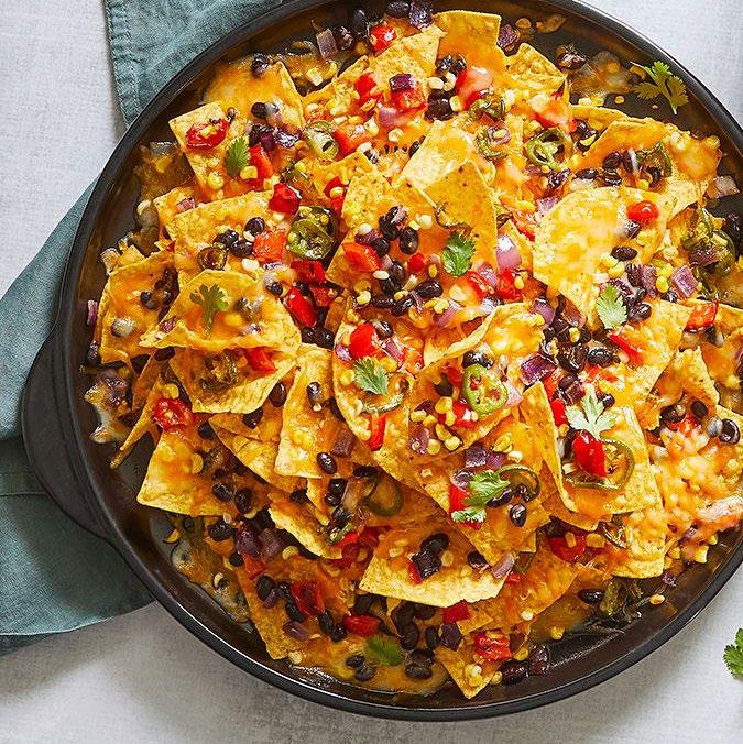3. Layer half of the chips, cheese, black beans, and vegetable mixture onto the stone; repeat layering. Grill the nachos, covered, for 5–7 minutes or until the cheese is melted; remove the stone from the grill.