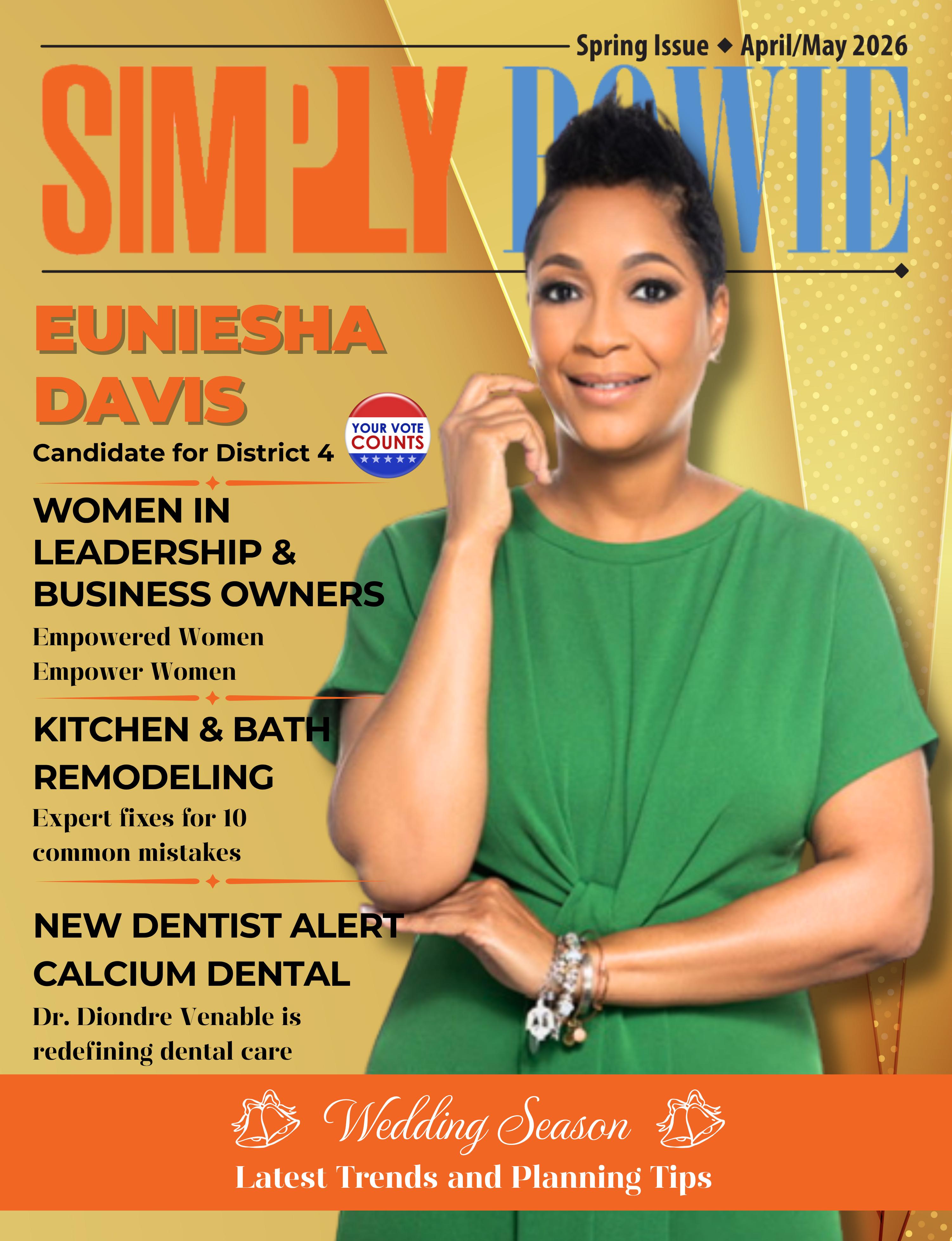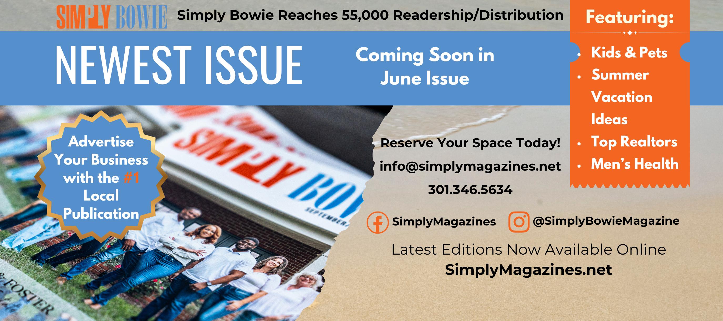 I love Spring Time because it sparks the beginning of outdoor exercising, power walking, riding my bicycle, driving to local beaches such as Rehoboth Beach , and my favorite magazine Simply Bowie Publication. We hope you enjoy this issue as much as we do!