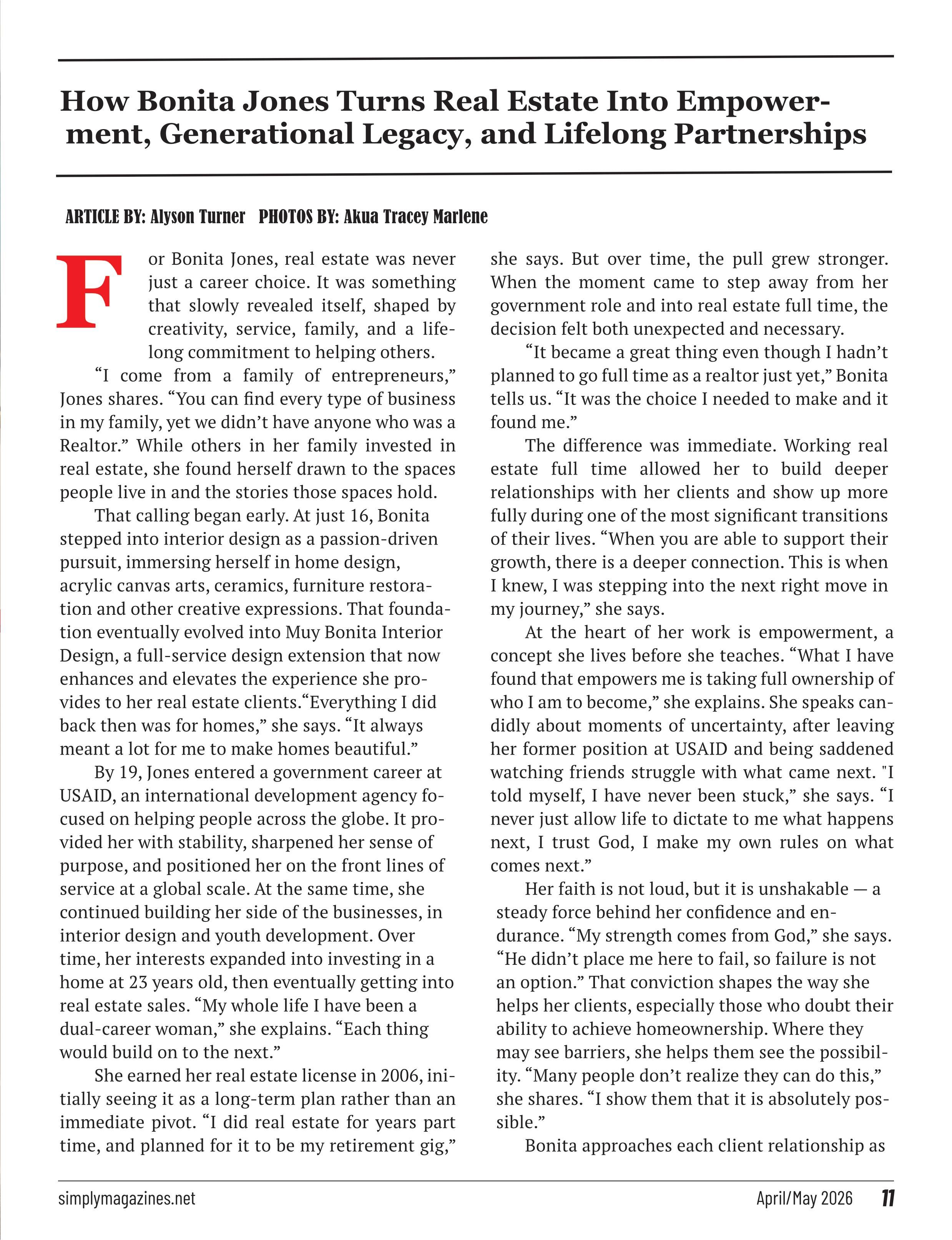 For Jones, the goal is not speed. It is sustainability. “I’ve worked with clients for over a year to help them get in position to buy,” she says. “Through this journey, if they remember anything about working with me, I hope it’s this: ‘She stood with me through every challenge and never let me quit.”