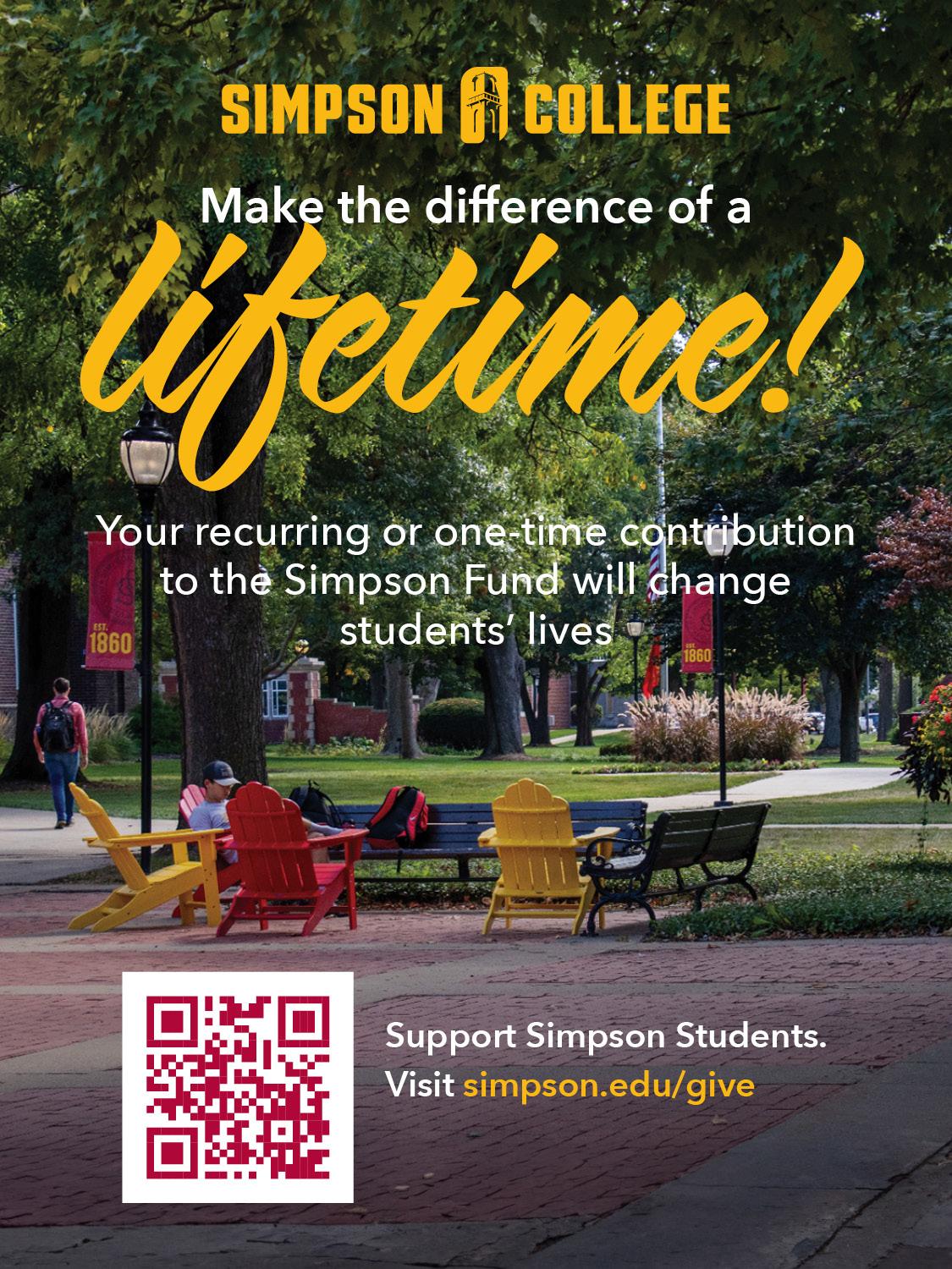 Simpson College recognizes that students must be ready with a diverse set of skills to lead multi-faceted organizations. Simpson College students’ determination and drive enables them to push boundaries through our unique Exploreship® program which allows students to define their career path and practice skills so they are ready for ANYTHING.