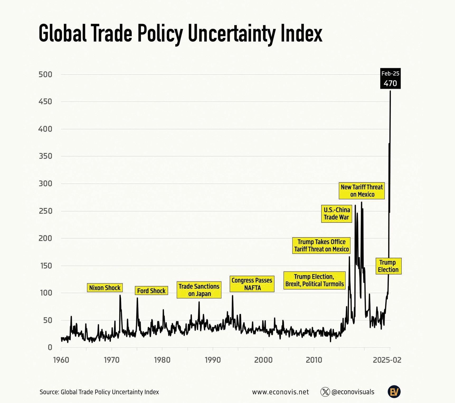 Since Donald Trump returned to the White House on January 20, the index, which goes back to 1960, has spiked to record levels, twice as high as previous peaks registered during Trump’s first term in office.