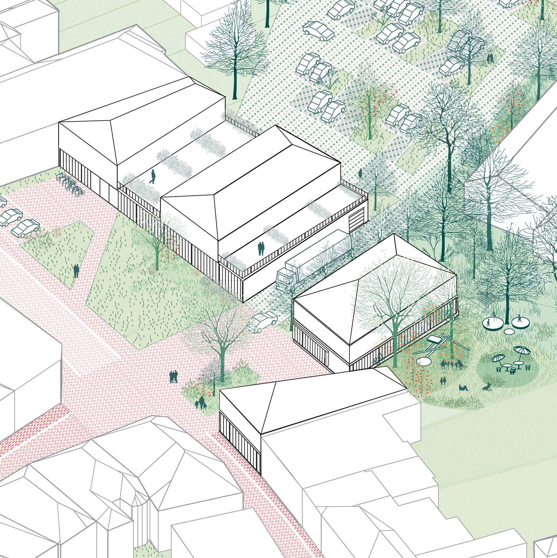 • ruimte voor een buurtwinkel aangevuld met enkele woongelegenheden in het centrum van de woonkern.
