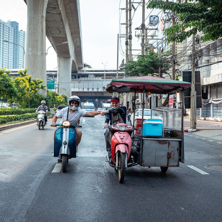 Mitte Januar hieß es für ein paar Kollegen aus dem SIP Scootershop Team: Winterjacke aus, Helm auf und ab nach Südostasien! Organisiert wurde dieses rollende Abenteuer von unserem Freund Lome von Vintage Vespa Thailand in Bangkok, der nicht nur unfassbar gut gelaunt ist, sondern auch mit einem riesigen Organisationstalent gesegnet. Spoiler: Eine solche Reise kann über kein Reisebüro der Welt gebucht werden – die kommt von Herzen: