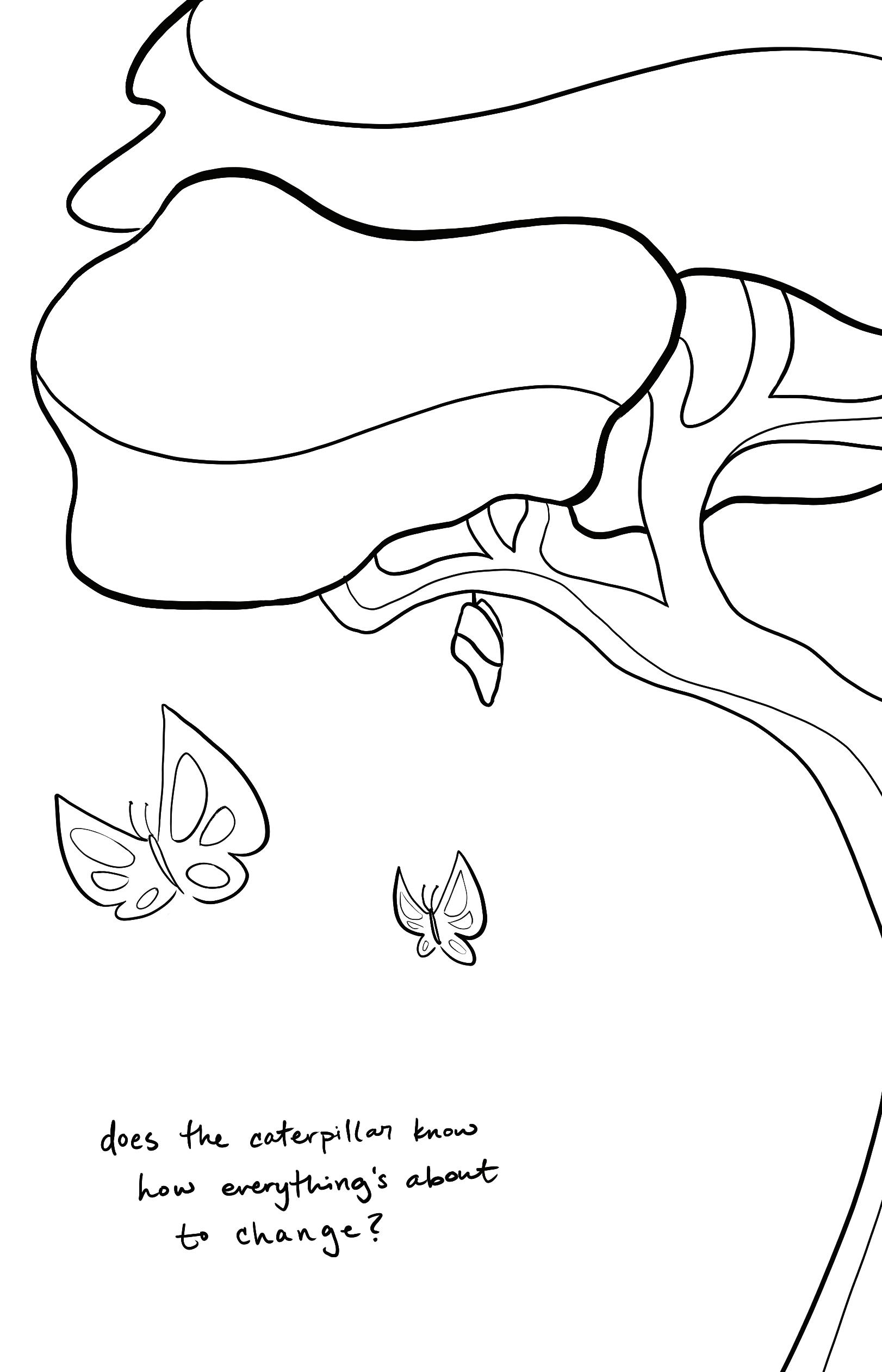 Not to be put off by the majority of caterpillars around me, I found a colony of caterpillars akin to me. All of us wishing to fly, to soar, to be able to wear our true colors on our bodies. Over the course of my time on the ground, I hear stories and see pictures of caterpillars who’ve turned into butterflies, and I wish I could be like them. “You could never be a butterfly” I get told time and time again. “Those caterpillars who’ve turned into butterflies don’t know what they’re thinking” they say. “I really want to be a butterfly” I tell my mother. “I can’t let you become a butterfly” they say “With all of your bright colors you’d become easy to hurt” my mother says. I don’t think she knows that not having those colors is hurting me even more.