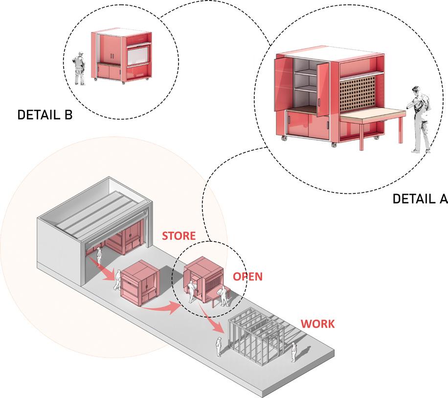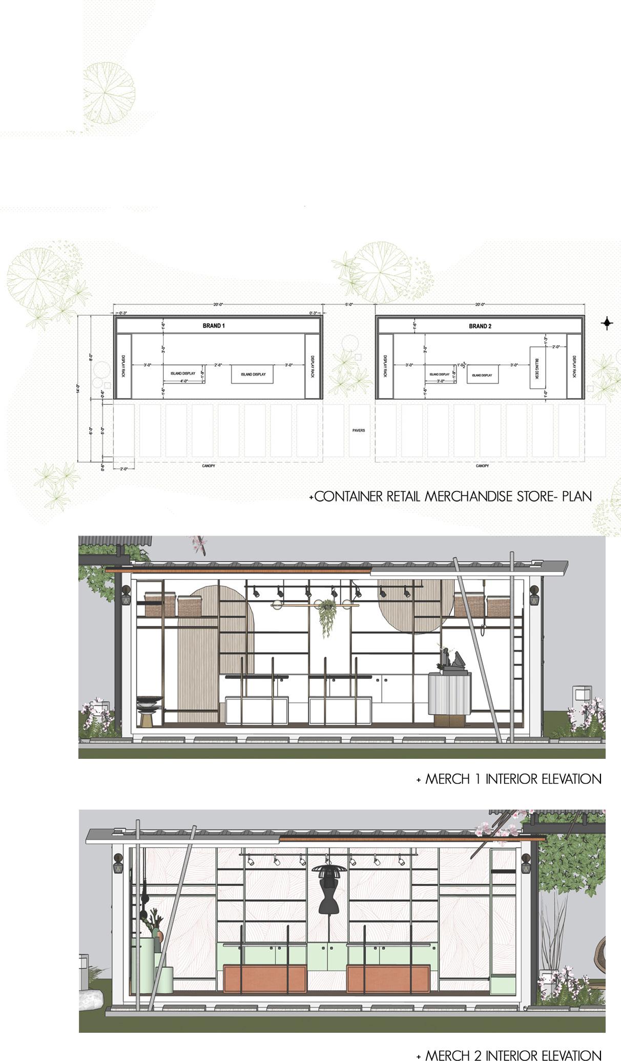 // Individualky worked on design and detailing of shipping container merchandise twin kiosks