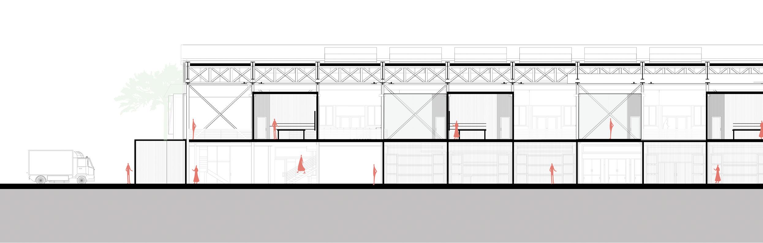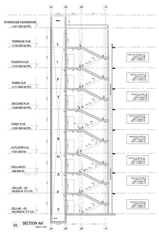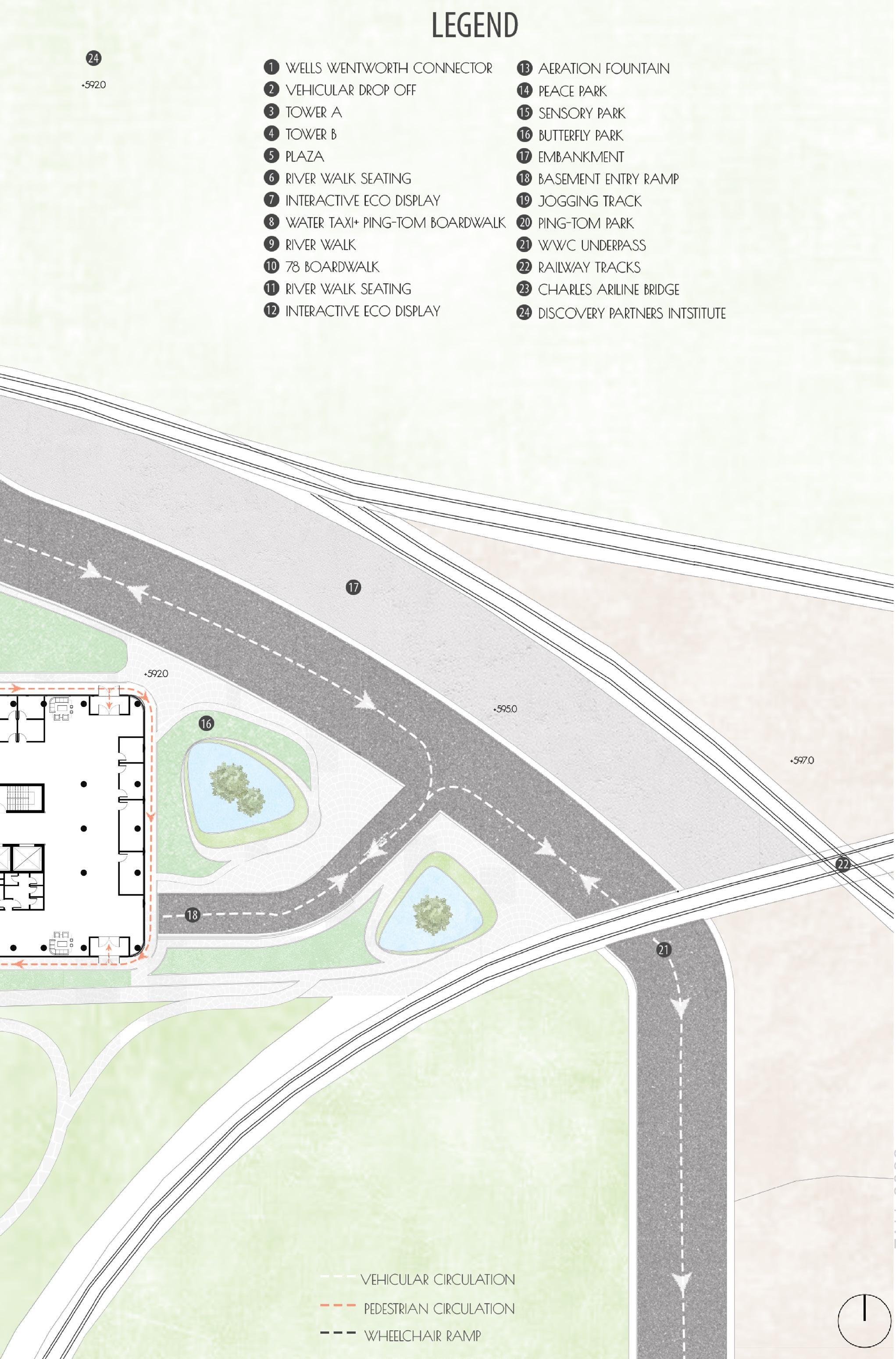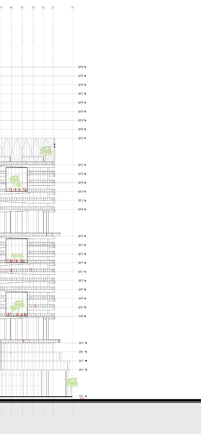 +RESIDENTIAL w/COMMON LOUNGE LEVELS 9, 16, 22 TOWER A 1-BHK UNITS COMMON KITCHEN & LOUNGE TOWER B 2-BHK UNITS 3-BHK UNITS COMMON KITCHEN +RESIDENTIAL LEVELS 6-8, 10-14, TOWER A COMMUNAL TERRACE FARMING CONSERVATORY TOWER B TOILETS SEATING AREA PERGOLA KIOSK +TERRACE LEVELS 5, 15, TOWER A COMMUNAL GARDEN PERGOLA KIOSK SEATING AREA TOWER B COMMUNAL TERRACE CONSERVATORY TOILETS SEATING AREA +PODIUM LEVELS 2-4 TOWER A DPI LABORATORIES CHILL ROOMS ADULT DAYCARE DAYCARE COWORKING SPACES PRINT LAB TOWER B CHILL ROOMS GYMNASIUM LIBRARY RETAIL LAUNDRY PHARMACY TOILETS +FIRST LEVEL LEVEL 1 TOWER A LOBBY FRONT DESK WAITING LOUNGE ADMIN TOWER B LOBBY/ FRONT WAITING LOUNGE ADMIN TOILETS MAIL SORTING PACKAGE SORTING +FLOOR PLANS: +SITE CONTEXT +SITE ANALYSIS +FORM EVOLUTION +PROGRAM DIAGRAM +PATI DIAGRAMS SCALE: 1/16” = 1’-00 13 +SECTION AA’ SCALE: 1/32” = 1’-00