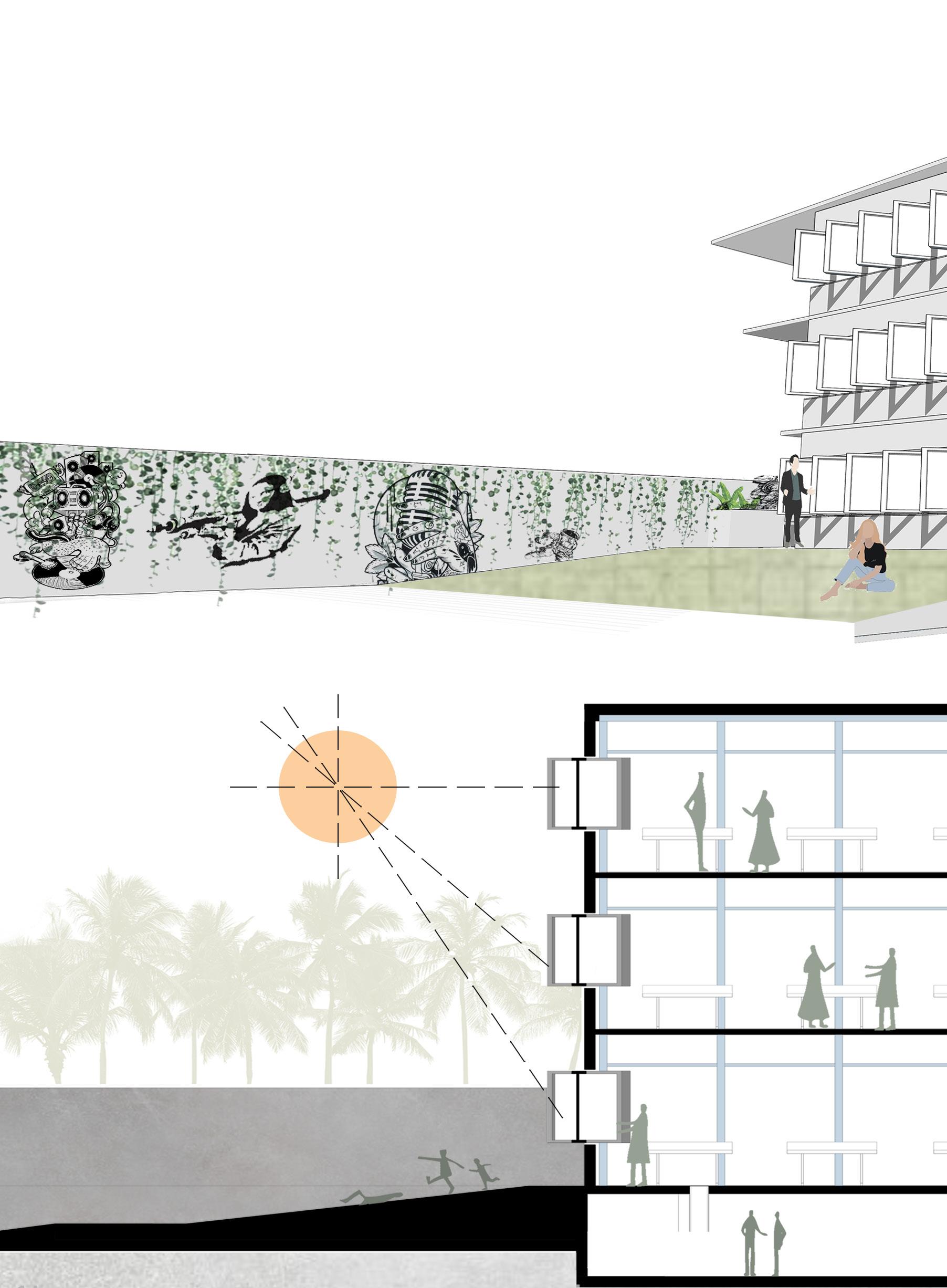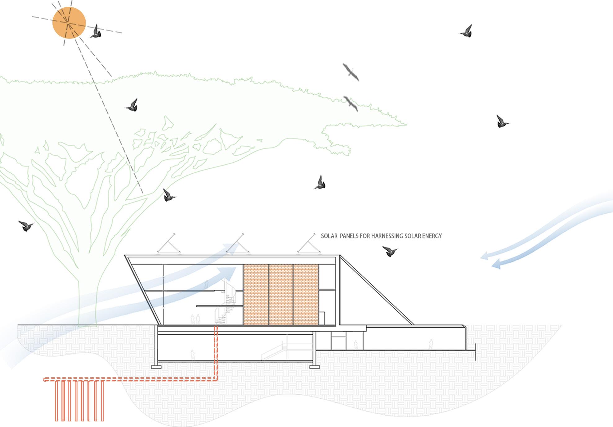 The environmental center is a sustainable attempt at resolving the issues in ecological and biodiversity conservation not just through traditional practices unique to the tropical land of India and advanced technological methods extracted from various parts of the world but also by educating, advocating and raising awareness among residents and tourists through the program with issues aimed specifically at overarching ecological issues currently Wayanad is facing. Integrating design with materials sourced ecologically from construction landfill, usage of brick, jaali walls, sloped roofing for rain water runoff, geothermal wells, live green roof, rain water harvesting, storm water revival, solar energy harnessing are a few design conscious inclusions.
