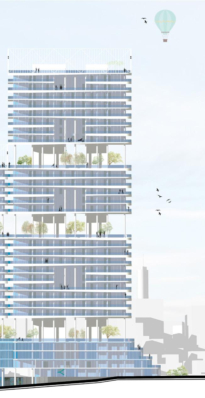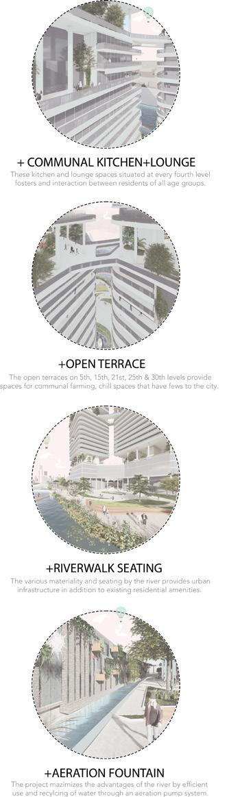 10 TOWER A TOWER B +RESIDENTIAL FLOOR PLAN: TYPICAL LOUNGE 22 & 28 KITCHEN KITCHEN & LOUNGESEATING AREA +RESIDENTIAL FLOOR PLAN: TYPICAL 10-14, 17-20, 23-27 & 29 TERRACE CONSERVATORY PIT KIOSK +TERRACE LEVEL PLAN: TYPICAL 21 & 30 GARDEN KIOSK TERRACE FARMING CONSERVATORY PIT +PODIUM LEVEL PLAN LABORATORIES DAYCARE SPACES LEVEL PLAN LOUNGE DESK LOUNGE ROOM SORTING ROM OCCUPANCY STATEMENT Total no. of units= 155 Units TOWER A 21 FLOORS, Ht. 260’ 1-BHK: [8x4] + [9x3] = 59 UNITS TOWER B 30 FLOORS, Ht. 370’ 2-BHK: [14x2] + [12x1] = 40 UNITS 3-BHK: [14x4] = 56 UNITS PLANS: EXPLODED AXONOMETRIC LEGEND CIRCULATION LANDSCAPE 1 BHK 2 BHK 3 BHK COMMON