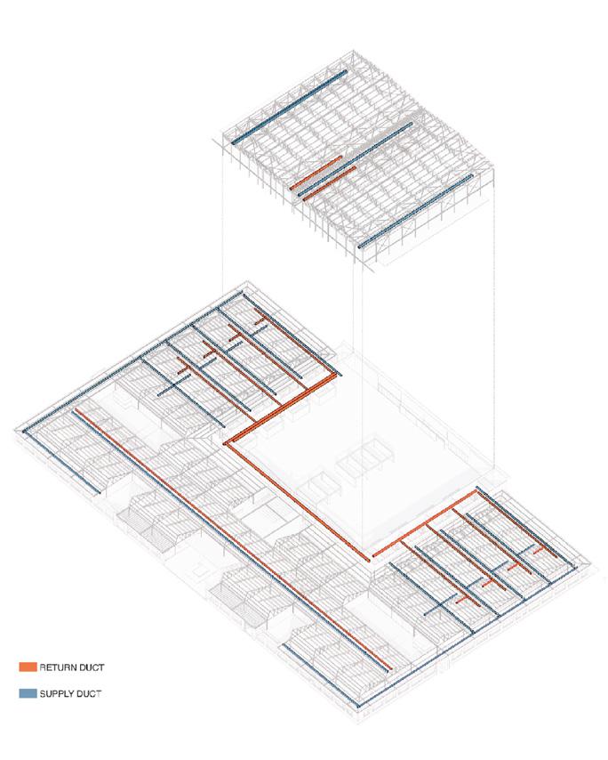 DIAGRAM +ENVELOPE DIAGRAM +HVAC DIAGRAM EXISTING BRICK FACADE SHADING DEVICE CLEAR GLASS CHANNEL GLASS EXISTING BRICK FACADE DOUBLE PANEL GLAZING EXTERIOR DECKING PERFORATED METAL FACADE RETURN DUCT SUPPLY DUCT SCALE: N.T.S SCALE: N.T.S