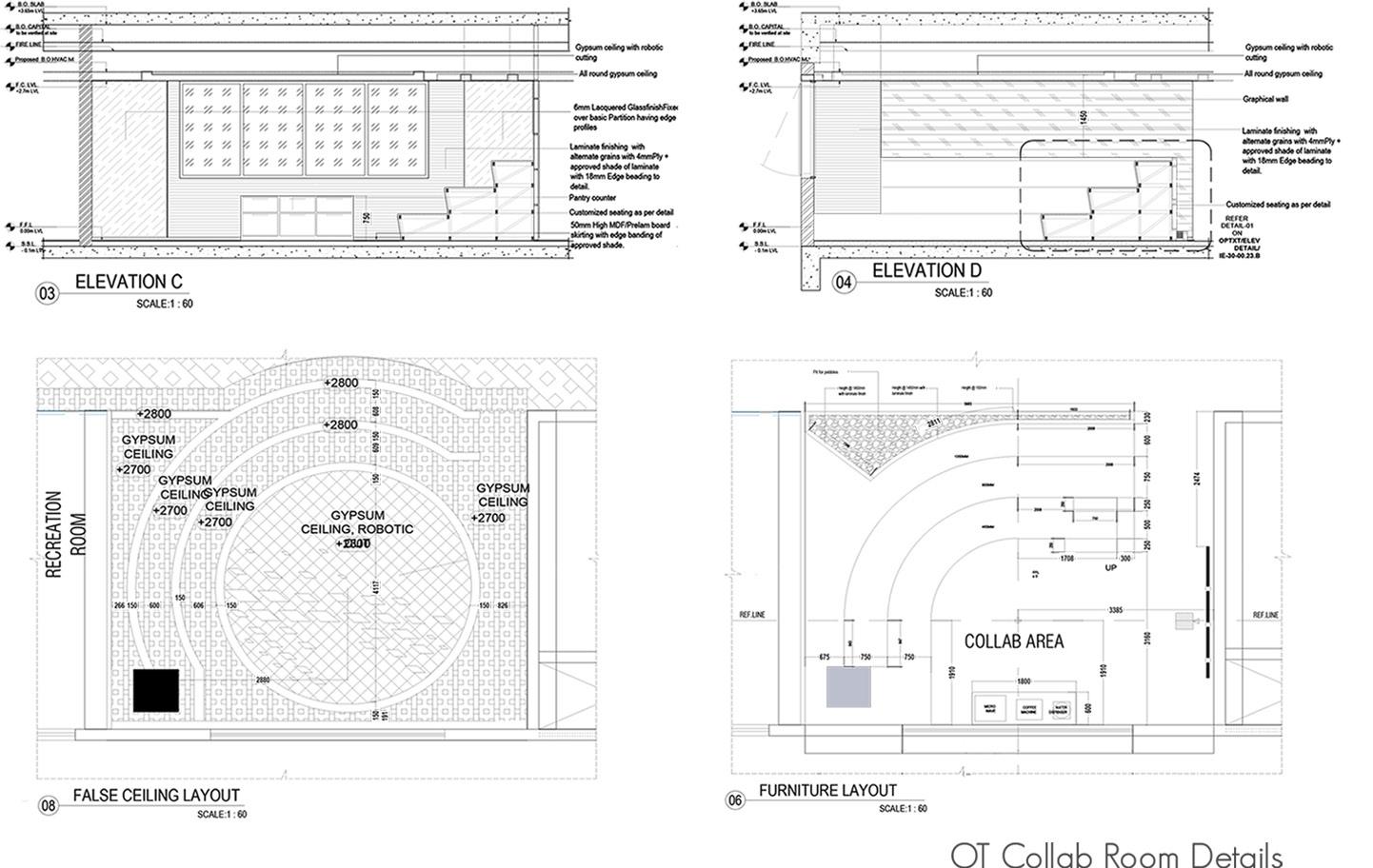 // Worked on design documentation, masonry drawings, carpet, false ceiling layouts, interior elevations