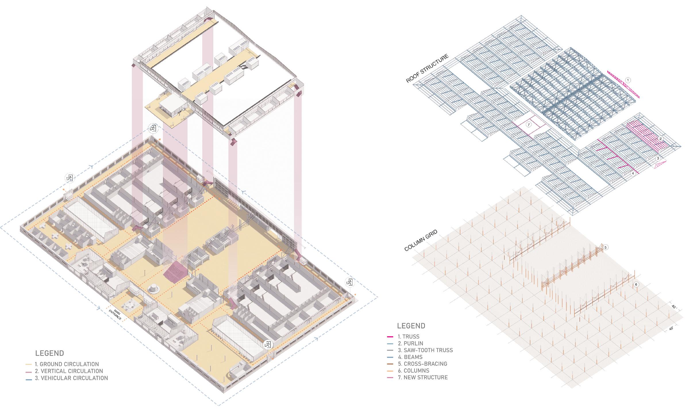 Continuing the history of Chanute Air Base as a place of training, Hangar 4 is envisioned as a as a post-secondary Construction Trades School where craftsmen, construction managers, and designers participate in hands-on, interdsiciplinary projects. This proposal would revitalize Rantoul by providing a new opportunity for jobs in the skilled trades. As the number of young people employed in the skill trades declines, this school would provide an alternative path in establishing a life-long career. This would also create a regional impact by creating a new source of skilled labor for employers throughout Illinois. The construction school trains student in carpentry, ironworking, masonry, pipefitting, electrical, and heavy machine operation.