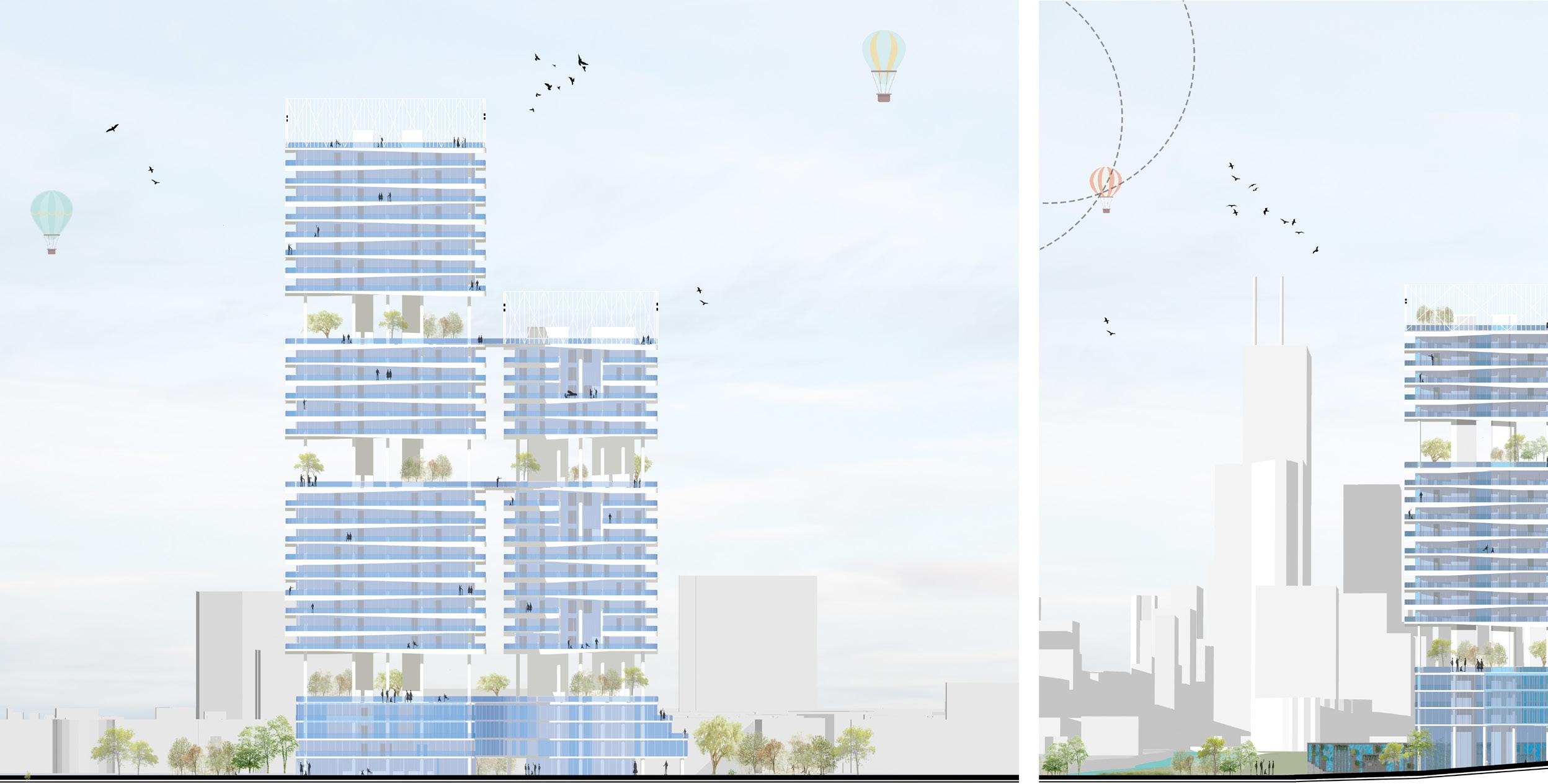 O2 the Intergenerational ecosphere is a tower aimed at housing people of multiple generatons. The initial brief called for a program that would be a safe haven for the users. Our design developed through a series of investigations ranging from site Analysis, conceptual studies, through words, massing studies and other case studies reflects the best of what it truly means to live in a tower that can contribute to the health and well being of all the generations. Strategies like Connection to nature, movement, social interaction, equity, Indoor air Quality and multisensory design are integrated from ground level to the very top of the tower. Both horizontal and vertical circulation are designed to Foster interaction among users inadvertently. The intermittent open terraces are idyllic settings that break the continum of rigidity and monotony by introducing secondary communal spaces that bring the residents together. The beau ideal of the entire project are the triple height communal kitchen/lounge spaces at every 4th level. These reintroduce the concept of inadvertent interaction by bringing more and more residents together and aid engaging in various events and routine.