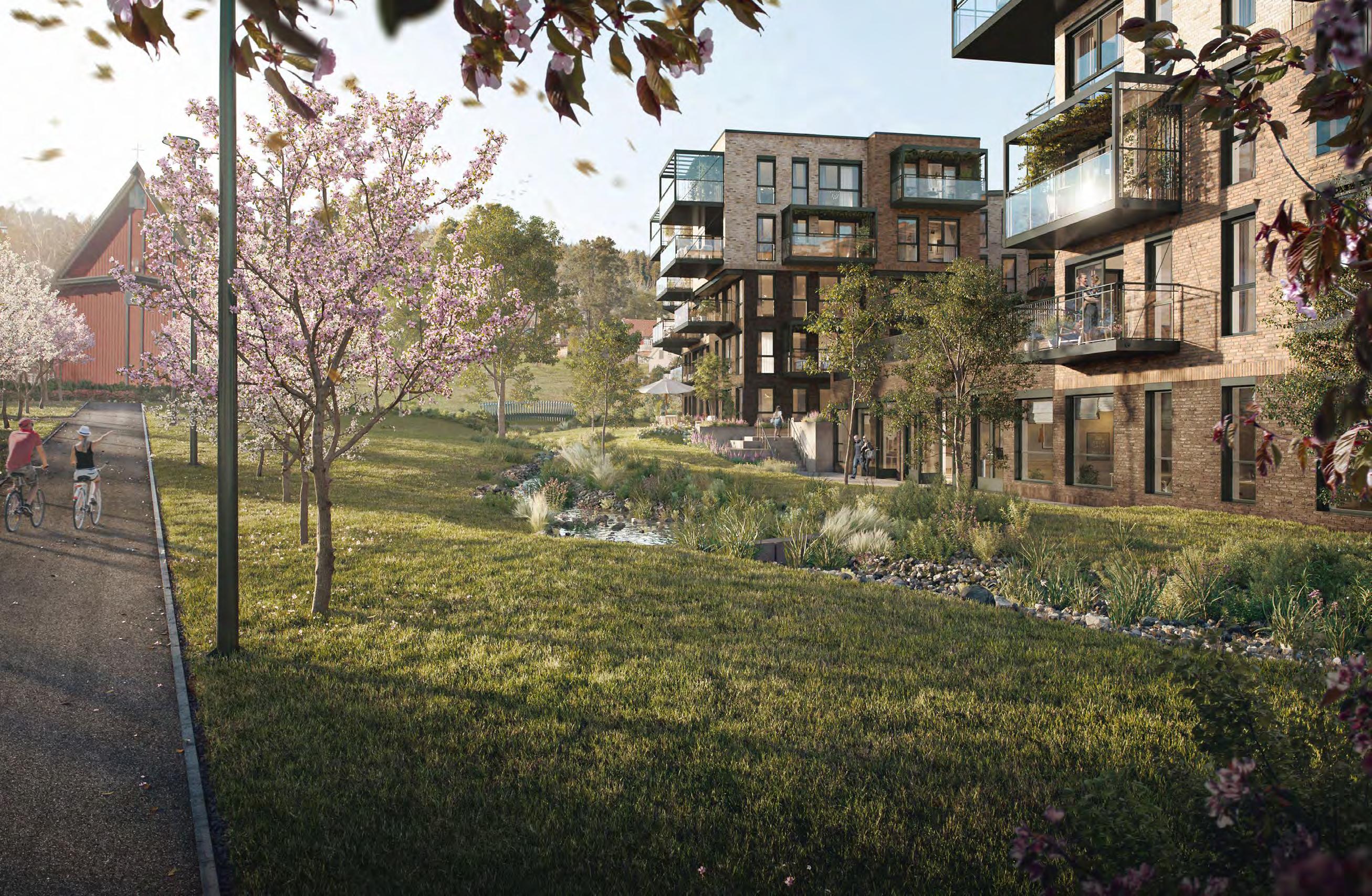 Med parken som nabo vil bebyggelsen føles friere, med mer pusterom. Det er noe befriende ved å ha en slik umiddelbar tilgang til et fritt og grønt område. Det føles som det er litt ditt. Den nye parken, med lekeplass, bru og skravlebenker er til glede for store og små, med muligheter for aktivitet, rekreasjon og barnelek – og mange deilige pikniklunsjer.