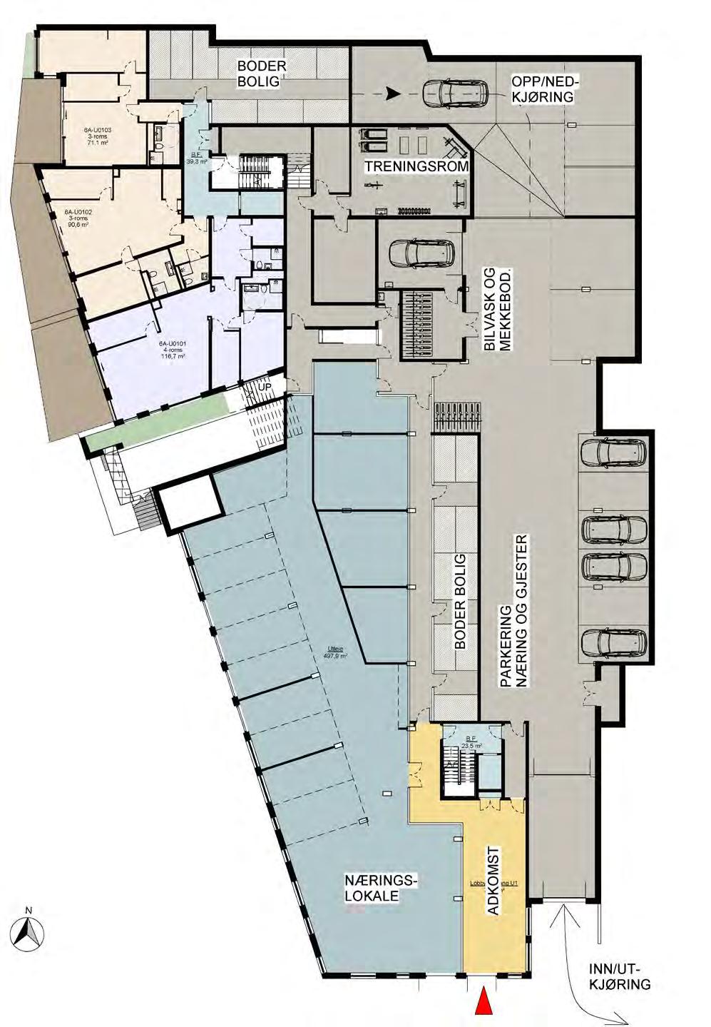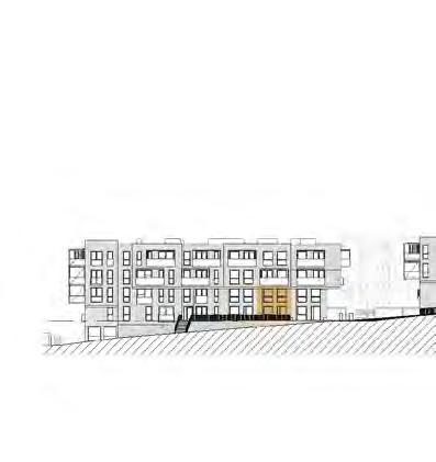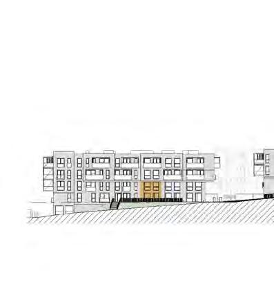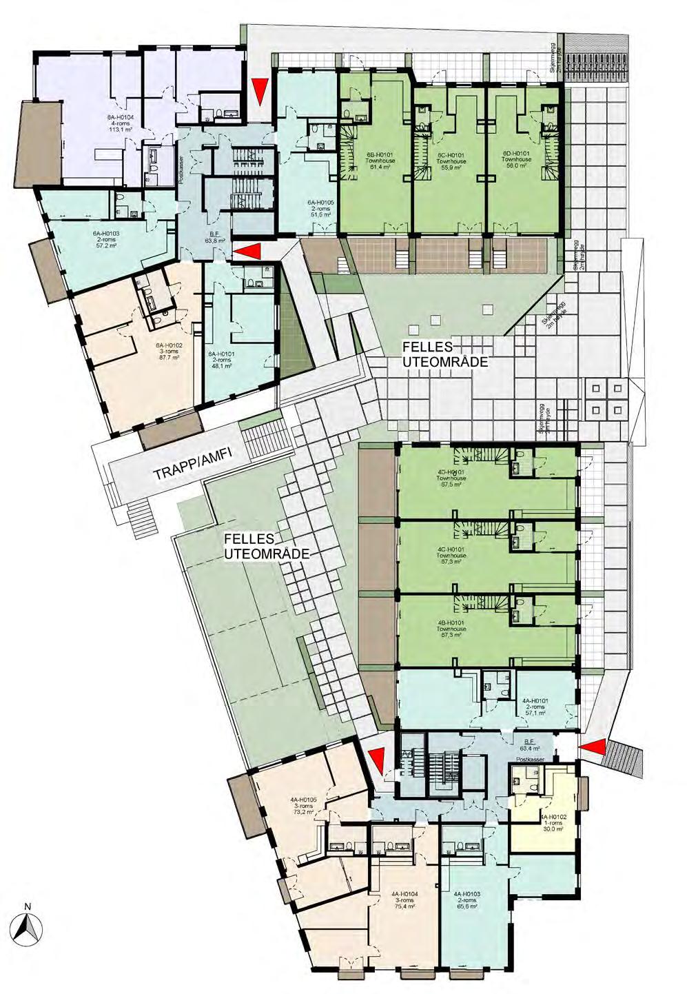 På terreng, mot felles uterom, er det i tillegg lagt inn seks townhouses over to etasjer, med egne innganger fra Øvre Grønliveien eller fra gangveien nord på tomten.