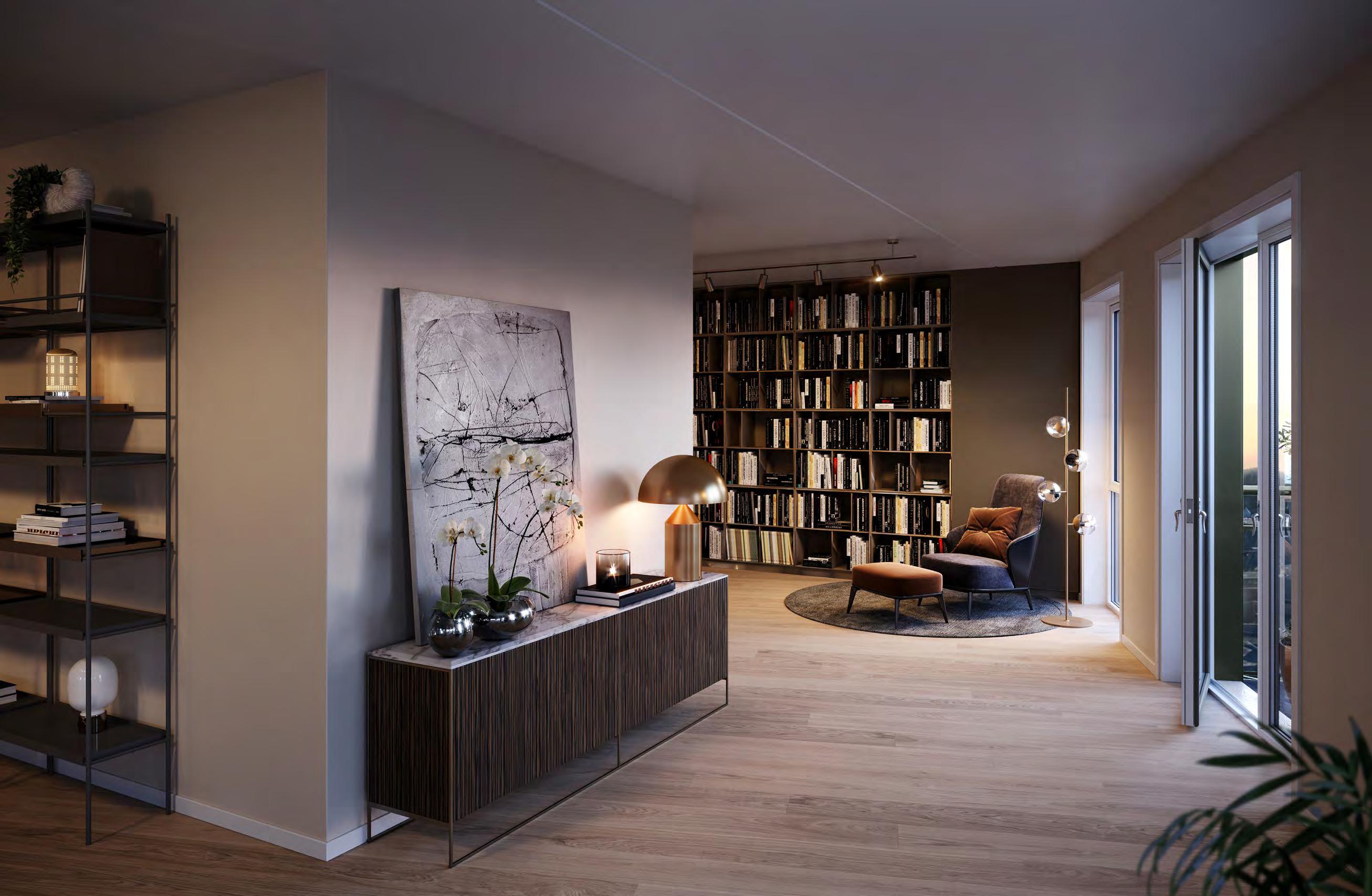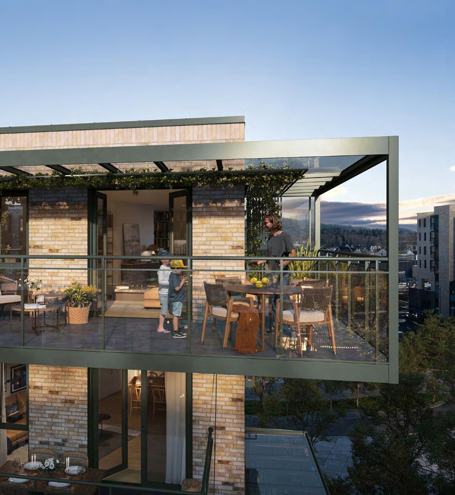 Dette blir et av områdets flotteste boligprosjekter. Arkitektene har skapt luftige boenheter for alle typer mennesker i alle faser av livet; single, par og barnefamilier. Unge og eldre. Her byr vi på både mindre og større