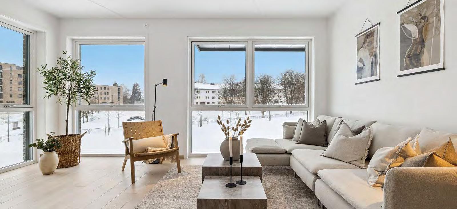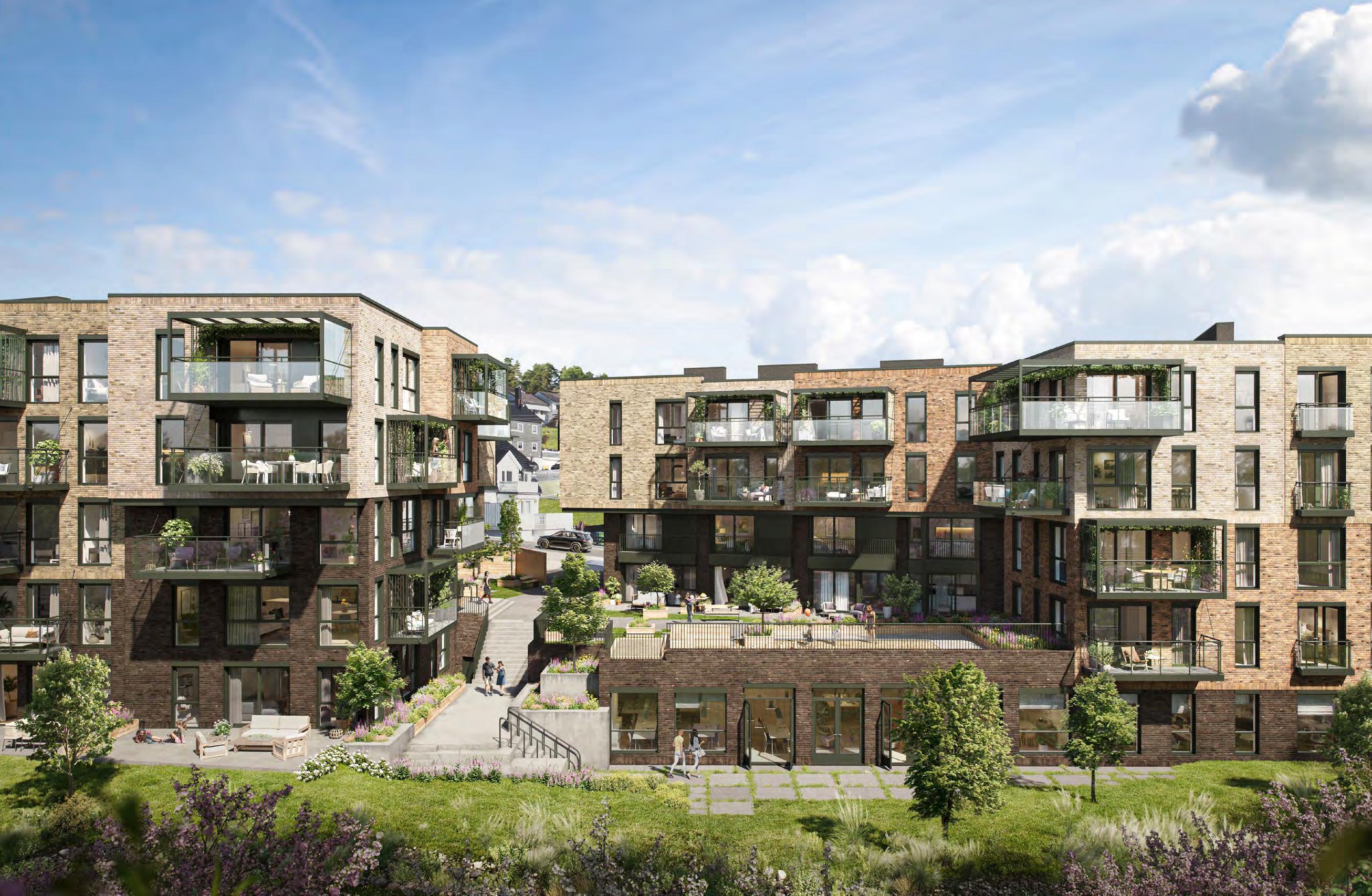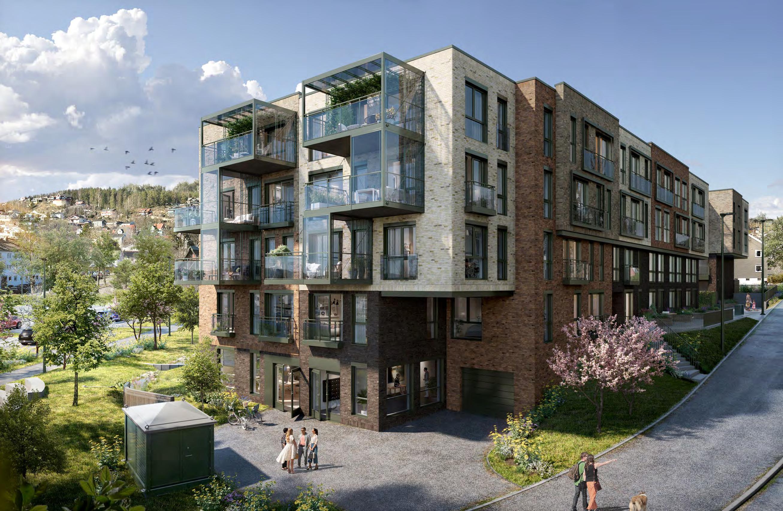 hjem, alle i solid utførelse med smarte planløsninger og store vindusflater, nærmest fra gulv til tak, som slipper lys og energi inn. Boligene er svært varierte og vil bidra til å skape et mangfold av mennesker. Kos deg i solen i både parken og fellesarealene, som på hver sine måter oppmuntrer til godt naboskap og nye vennskap.