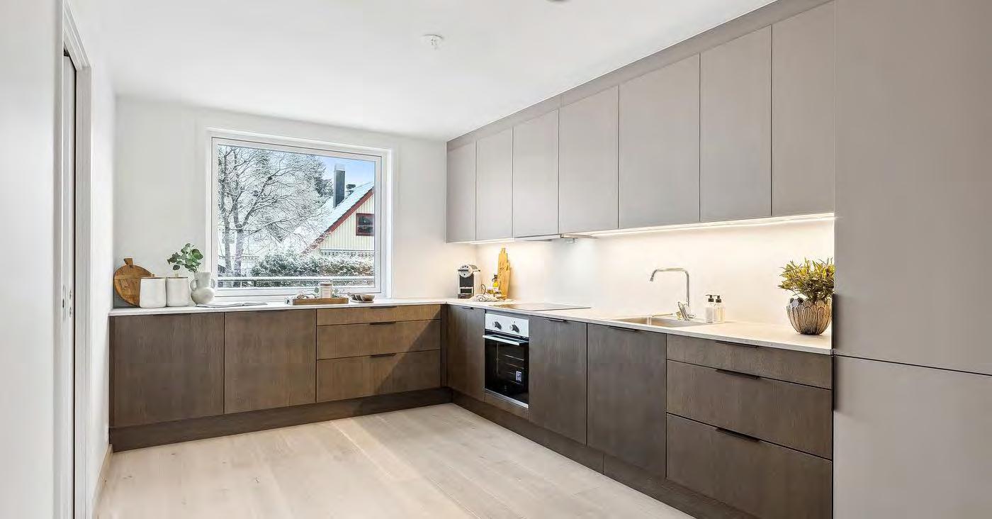 leilighetene har vi oppgradert leveransen med ekstra kvaliteter på kjøkken og bad.