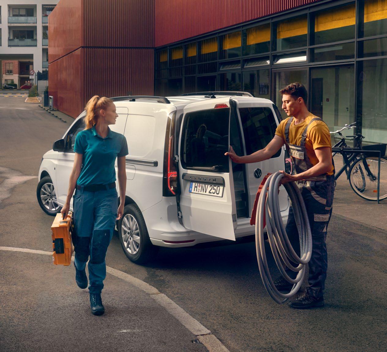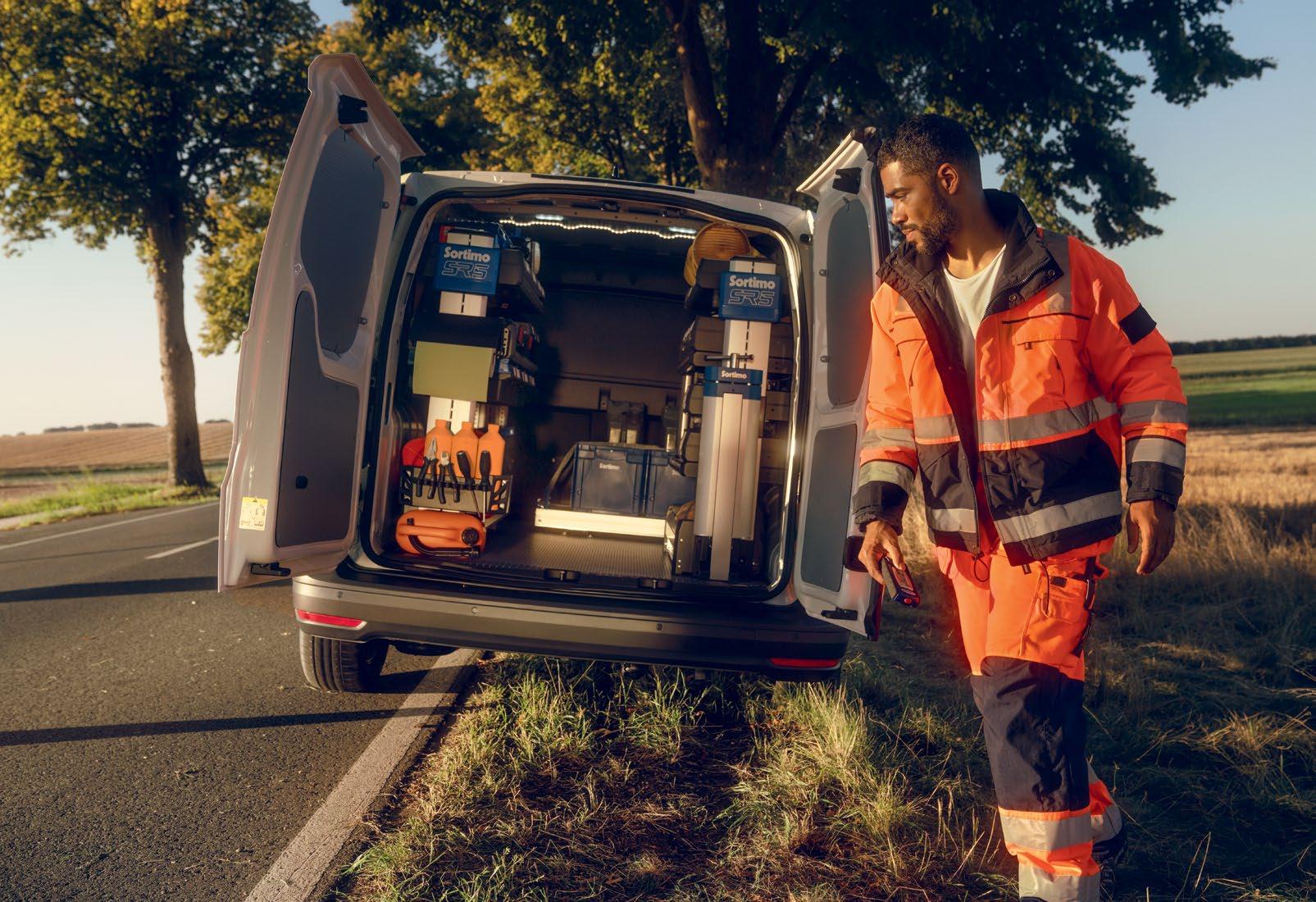 Volkswagen Caddy Cargo har smarte løsninger som er til god hjelp i en arbeidshverdag full av utfordringer, for eksempel de brede skyvedørene på Caddy Cargo Maxi.