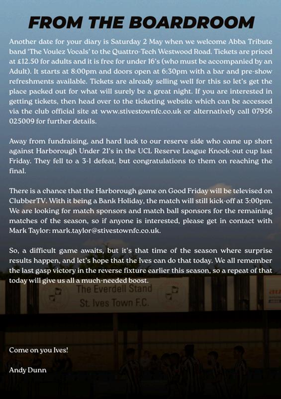 Still without a win in 2026 sad Ives slipped to their ninth defeat in a row a run which has seen them tumble from a comfortable mid table position into the relegation zone. But yet again there were glimpses of the early season form that still gives a little hope that they can soon arrest their slide and move away from the bottom four but that turn around must come soon