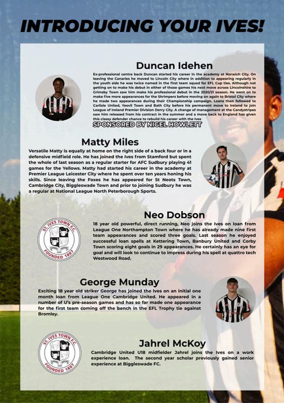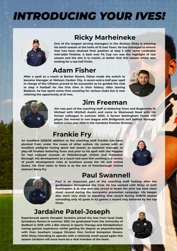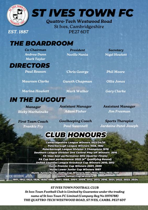 Since our last edition of the match programme, the ladies side have also been in action in the Alan Boswell Group Cambridgeshire Girls and Women's Football League Division Two. Ives lost out to Cambourne Town and Whittlesey Athletic, leaving them 7 in the table. Unfortunately, they were also knocked out of the Hunts FA County Cup by Eaton Socon.