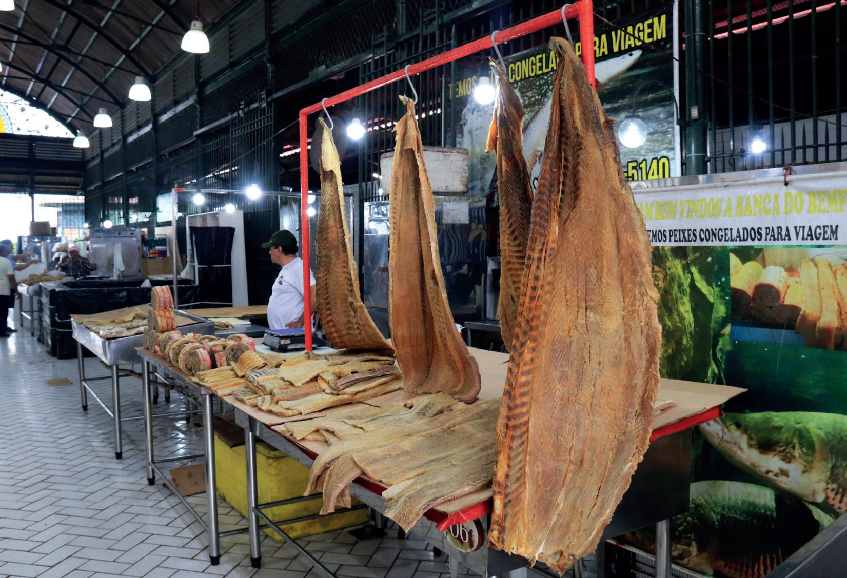Pirarucus secos à venda no Mercado Adolfo Lisboa, Manaus, Brasil