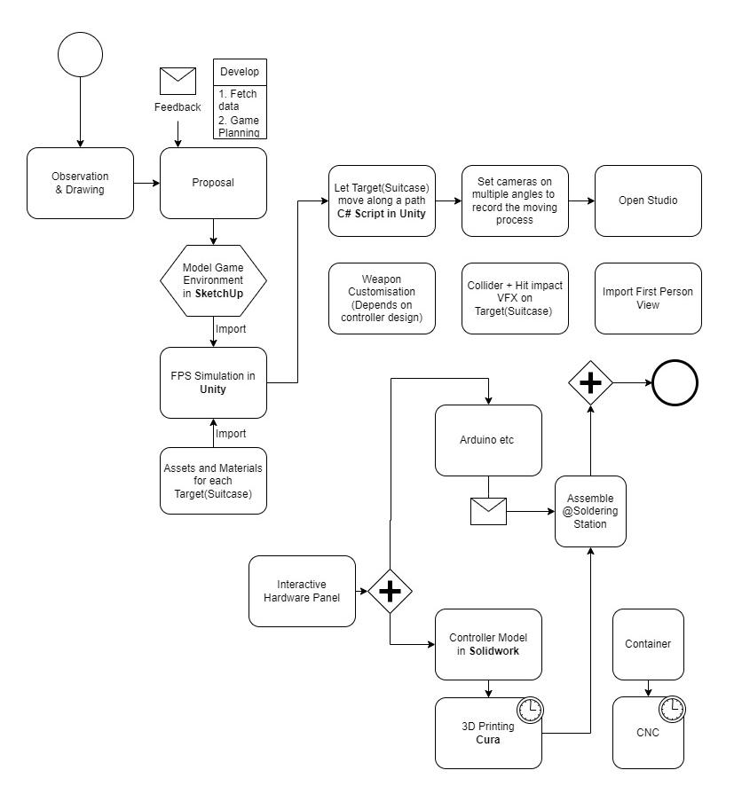 ?In consideration of the travelator with passenger are all moving, including the handle bar, I thought about where to mount the controller and how to let users initiate interaction with ease. And I was not sure the shooting element is appropriate for public space.