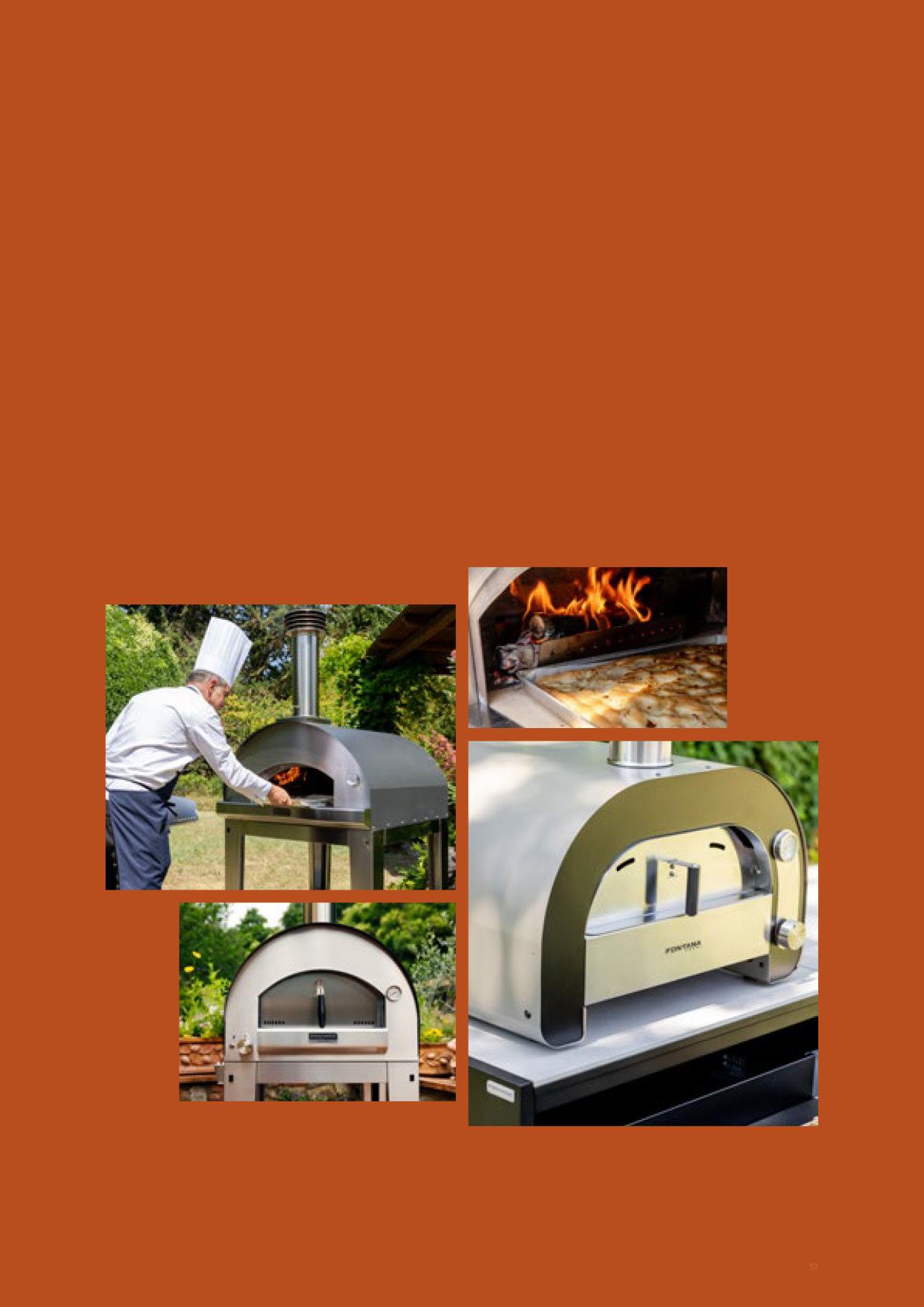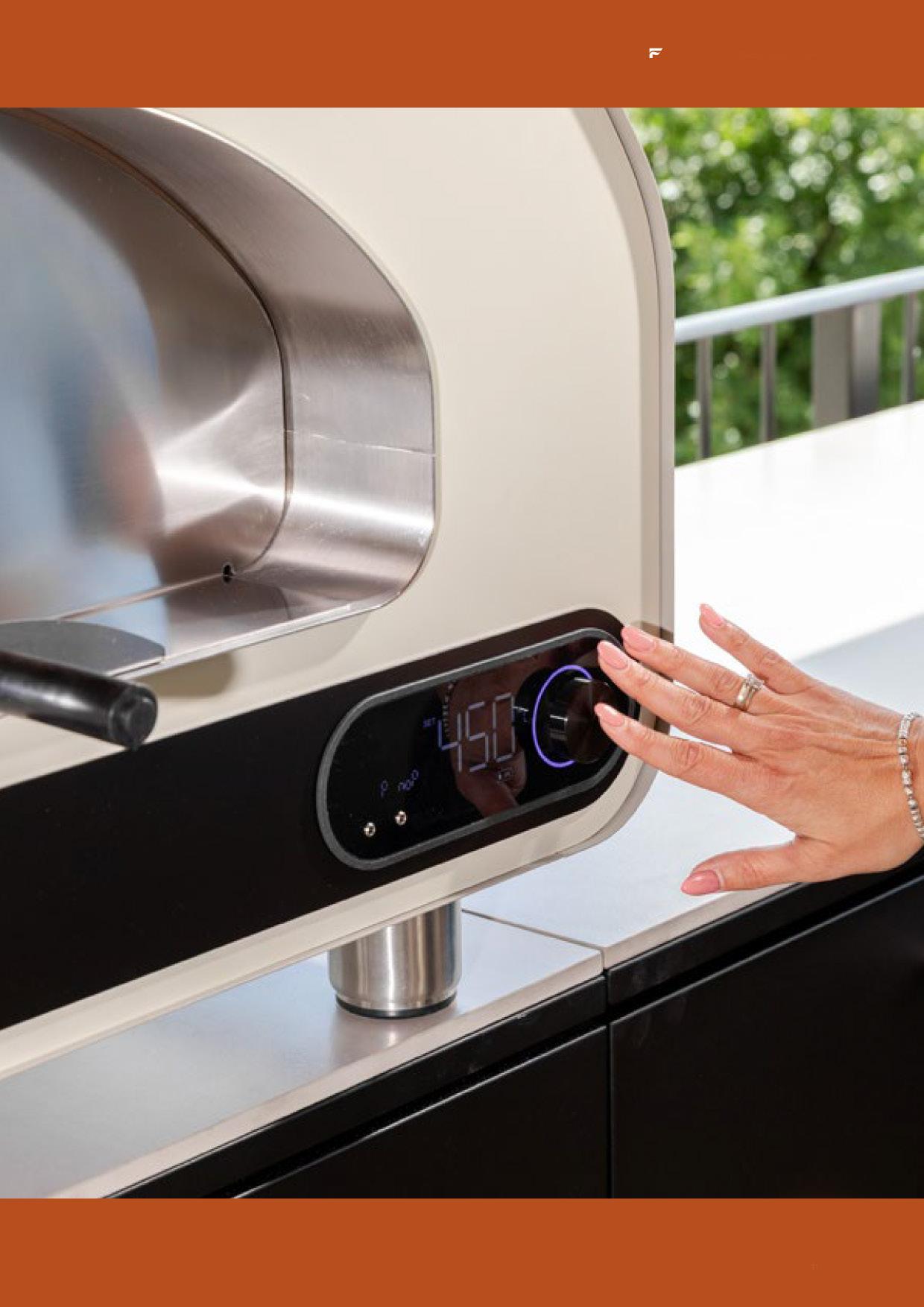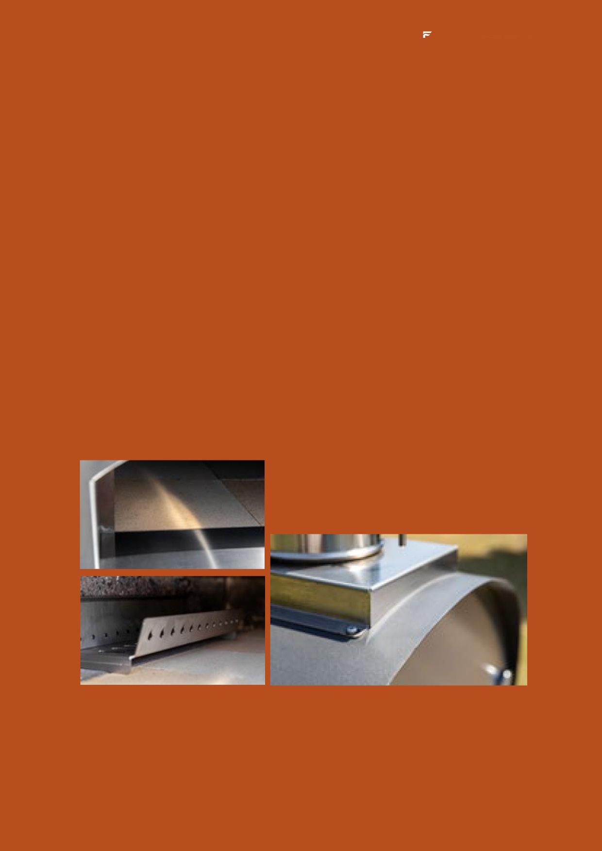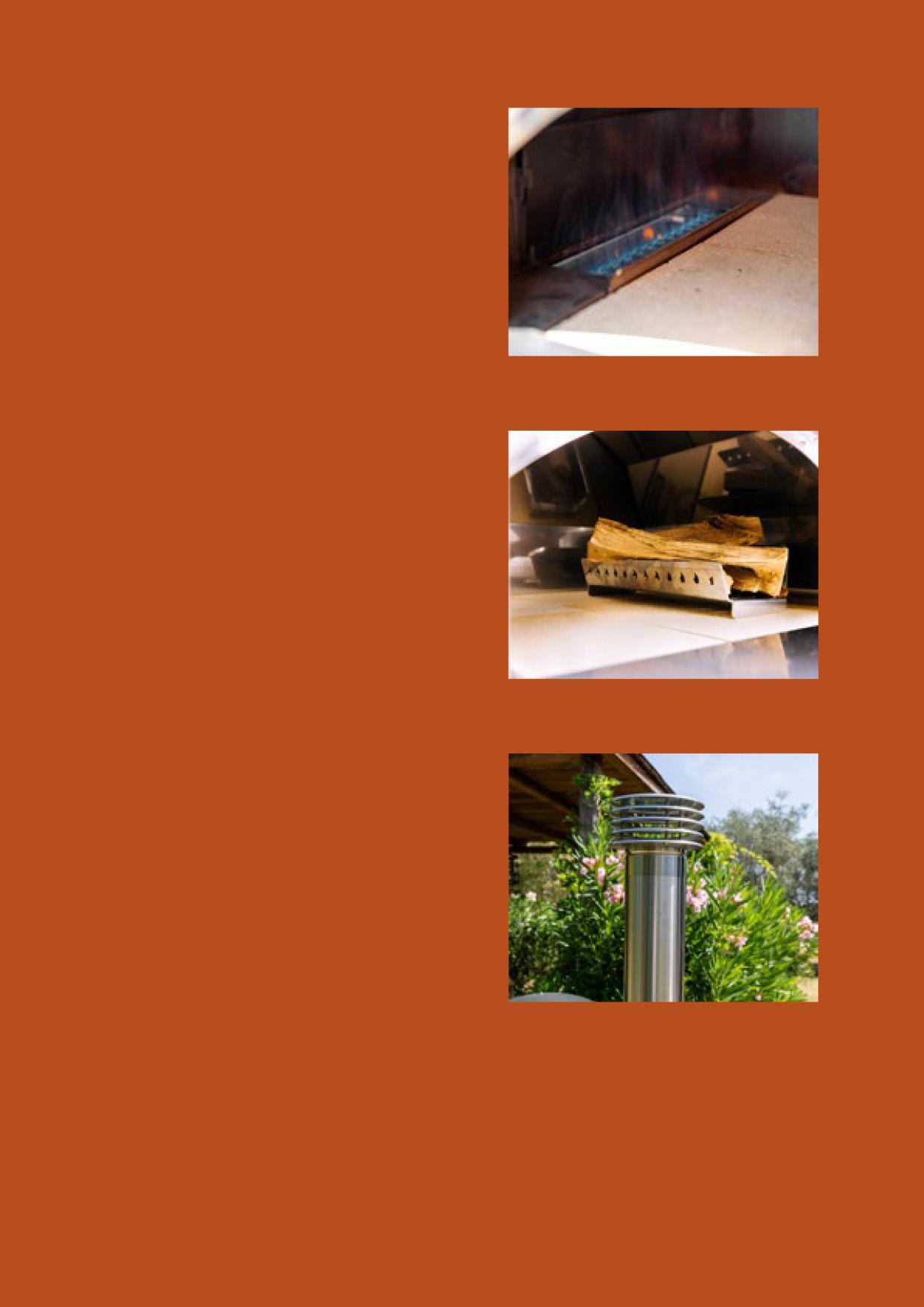 Both wood-fired and gas-fired pizza ovens are made with topquality materials: high-quality steel, high-density ceramic fibre insulation, galvanised and Qualicoat-coated sheet metal for weather resistance, and Skamol insulation at the base, under the refractory stones. These high-quality materials optimise performance, ensuring heat retention and long-term reliability.