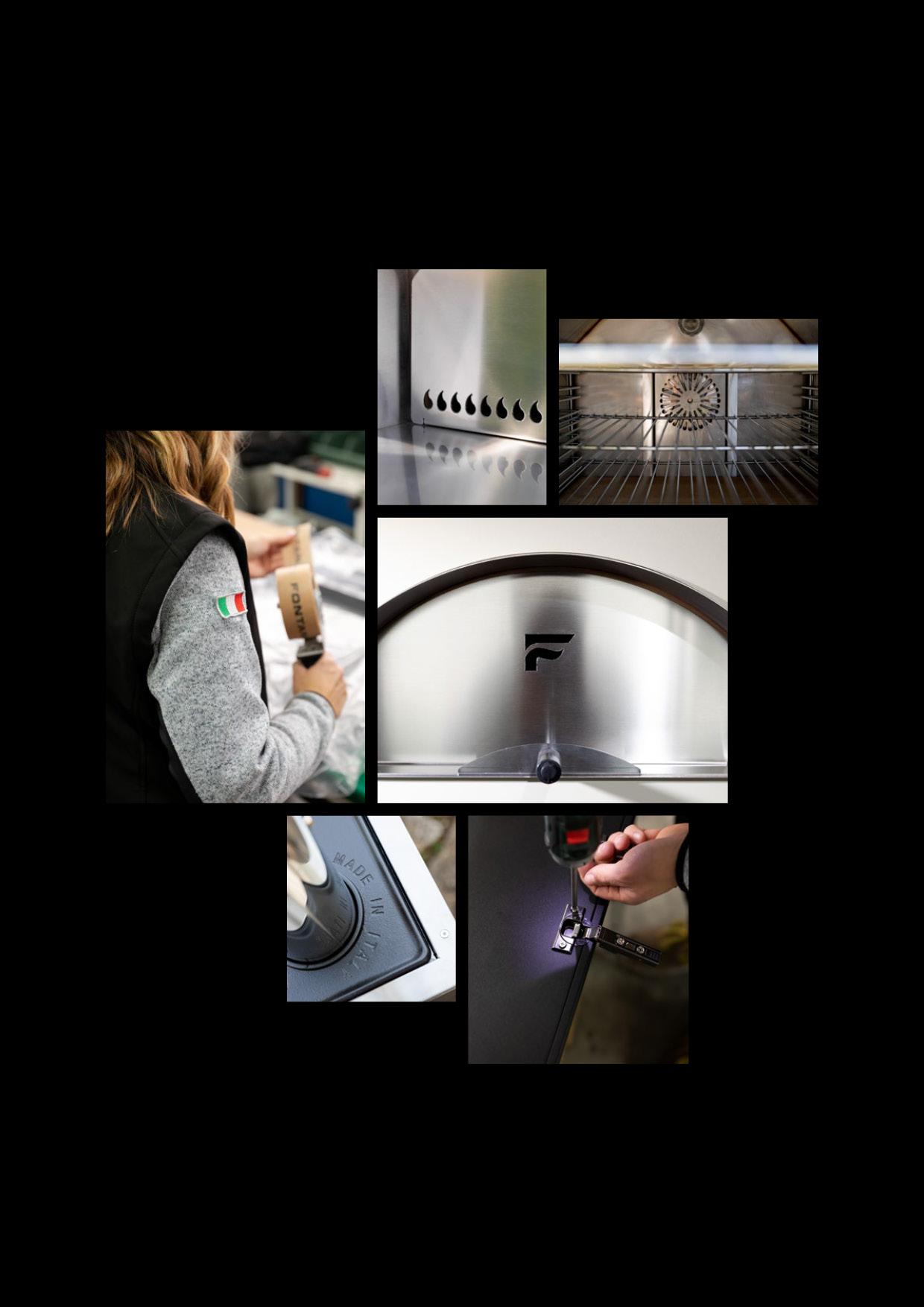 The oven vaults are continuously welded by our master welders, not spot-welded or bolted, to withstand thermal stress and ensure long-lasting durability. Additionally, the 4 mm steel-corten or stainless steel flame guard completes the structure, allowing Fontana to offer a 6-year warranty on the vault—a symbol of quality, tradition, and innovation.