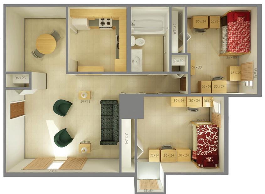 View apartment layouts at siue.edu/housing