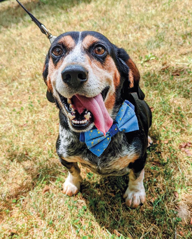 The year after that, I created matching custom bow ties for myself and an adoptable dog named Zachary. To fit that year’s sci-fi theme, I used a fabric with a purple-and-blue galaxy pattern and silver sequins.