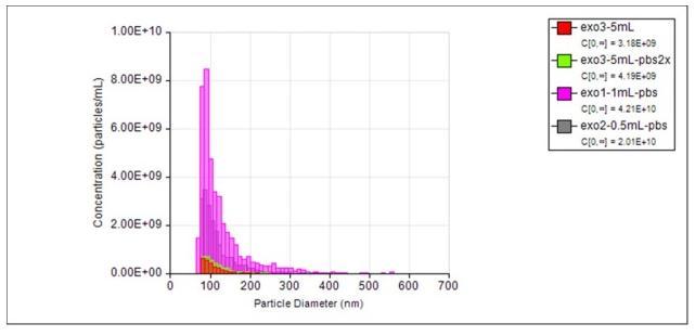 Fig. 3: Size distribution of experimentally obtained exosomes.