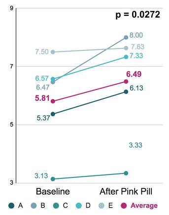SS increase in CPS score from the baseline after taking a pink placebo pillsignifies motor improvement