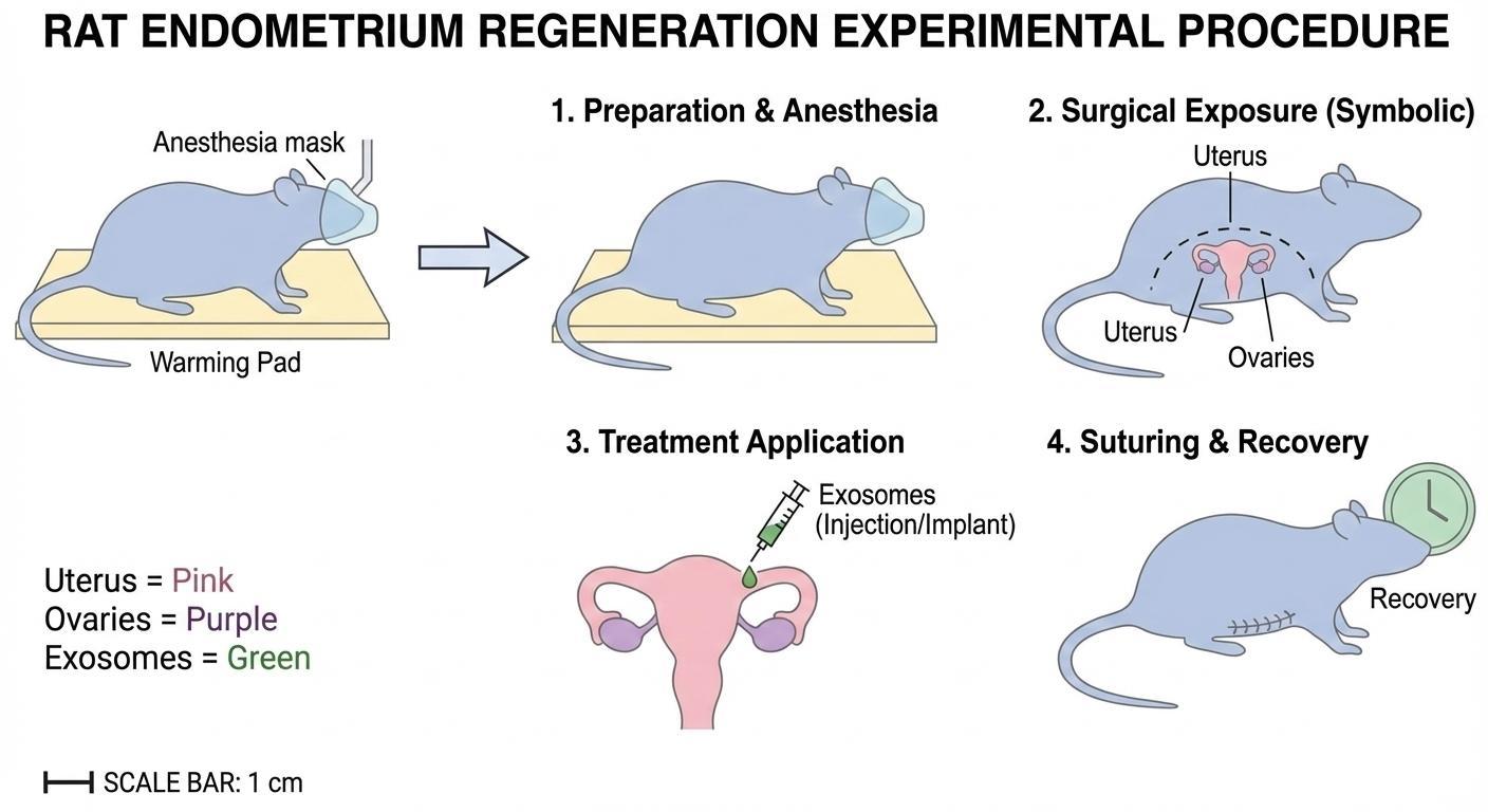Fig 4: Experimental workflow for rat endometrium regeneration using exosomes Image generated using Gemini 3 Flash (Google AI)