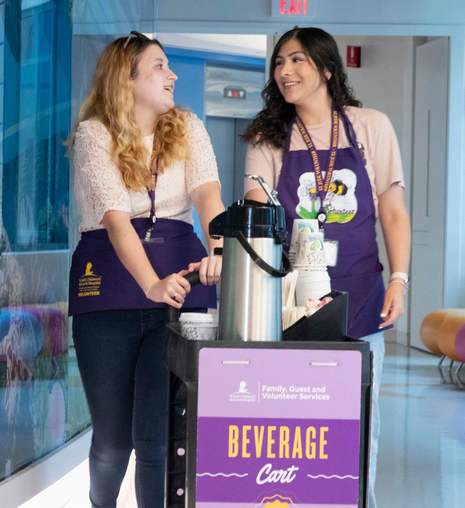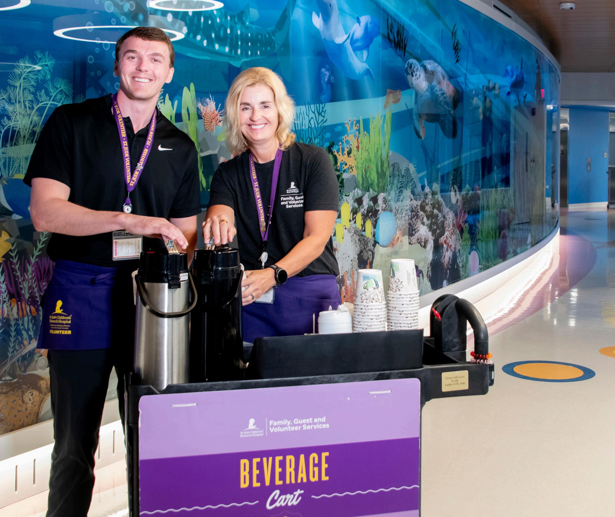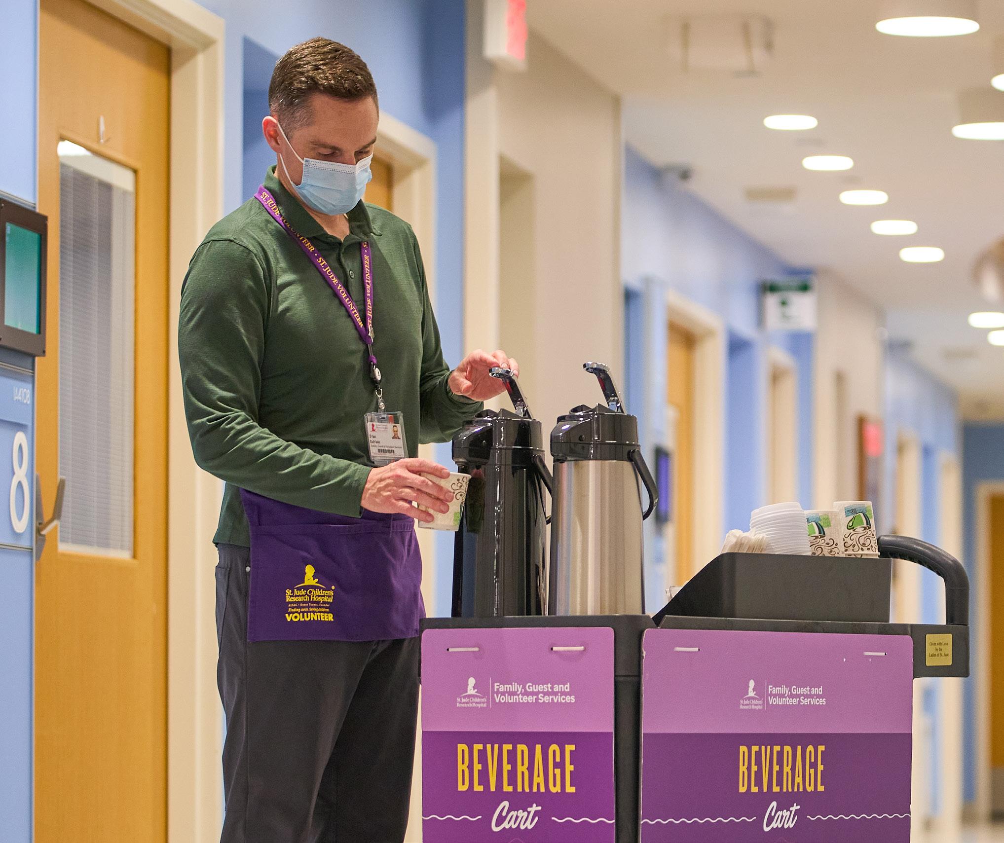 Beverage Cart volunteers offer patients, families and St. Jude staff hot chocolate and coffee each evening on inpatient units and in the Infusion Center.