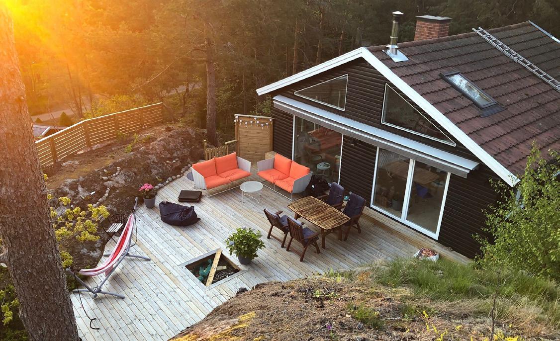 Snart ska husets stora snickarglädje, ekorrarna få sig en uppfräschning. Golven inuti huset är upprivna i några rum och stenull ska läggas i ett av sovrummen på övervåningen. Altanen har förfallit så mycket att allt behövdes rivas och byggas om. Men ett nytt sken börjar ta form och man anar ett charmigt hus på en lummig och lugn plats som snart kan rymma gäster igen.