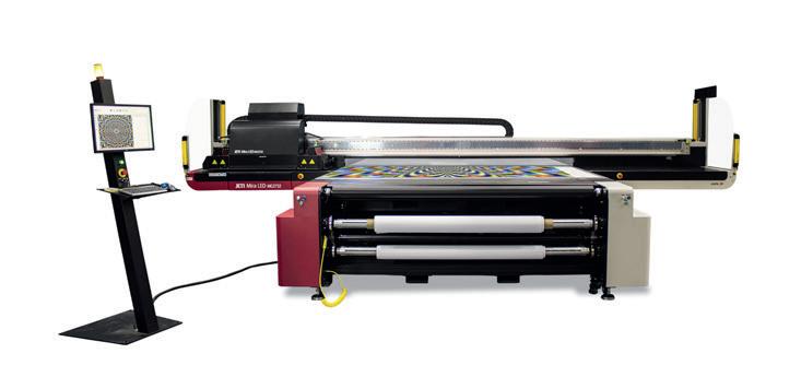 Print service providers can benefit from increased flexibility with the Flex RTR module, which does not need undocking when transitioning from rolls to boards or sheets. This improves printer uptime and maximizes print production efficiency. The module marks the next step in the Tauro’s automation story, focusing on the optimal utilization of this hybrid printing solution’s versatility. The Flex RTR was developed to match the one-pass printing mode on the Tauro H3300 UHS LED, up to a printing speed of 905 m²/h. It has a compact footprint and is ergonomic and userfriendly. With the simple press of a button, the dancer rolls controlling media tension move upward, enabling quick and effortless loading of the media by a single operator.