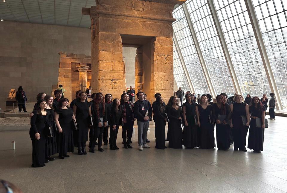 It is no simple feat to set up a performance in the only ancient Egyptian temple in the United States. As Mixed Chorus Director Hannah Nacheman put it: “Our awesome president, May, had a super cool connection with the Met Museum and hooked this up.”