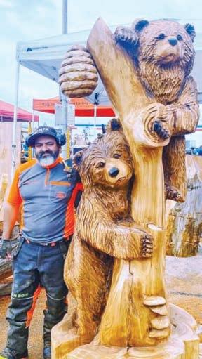 Nick Bielby has been carving for six years and 2023 will be his fourth year at the Sedro-Woolley chainsaw carving championships. Nick has carved at several other competitions on the West Coast. In 2019 he placed rst in the semi-pro division in Reedsport, which got him invited to Sedro-Woolley. Nick now has his own carving store in Port Angeles where his works are on display. Said Bielby, “I love to carve mostly wildlife and also enjoy competing in the carving world. I look forward to where carving will take me. Some people see a log laying on the ground. I see a bear or dragon. I’ve discovered that a chainsaw can work much like a paintbrush, and wood is canvas.”